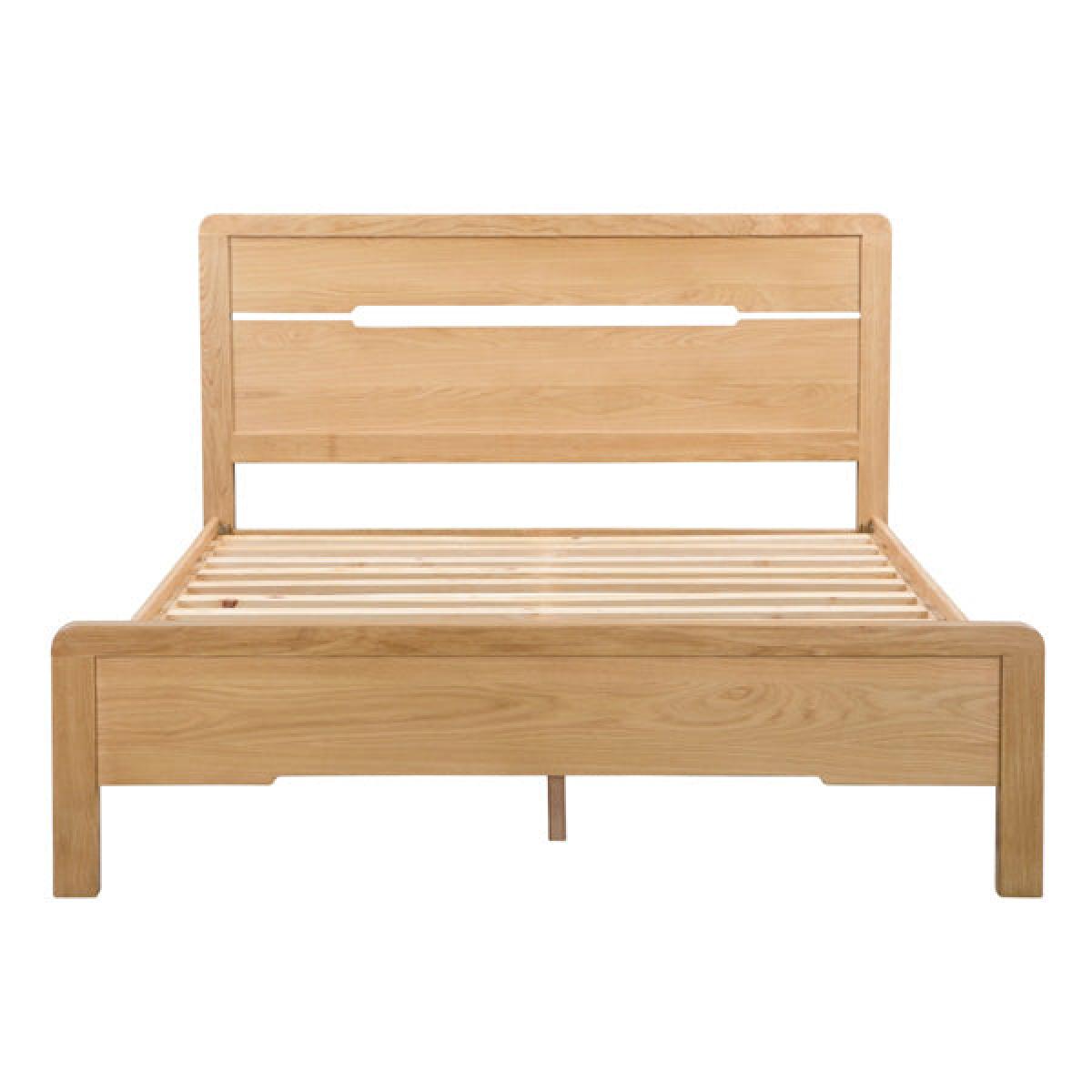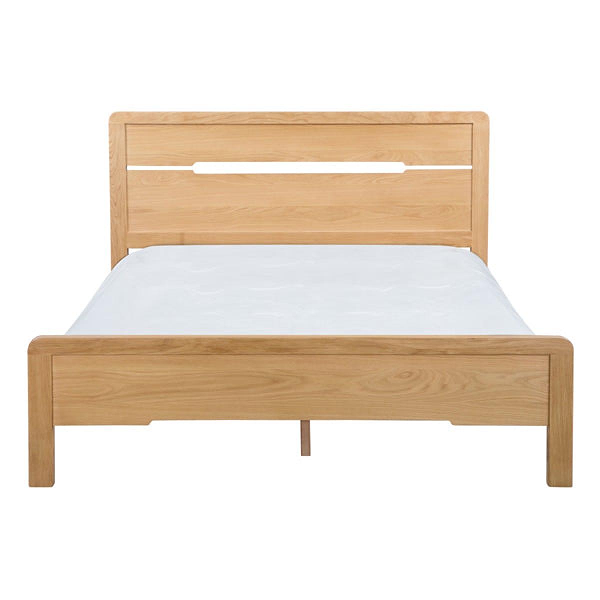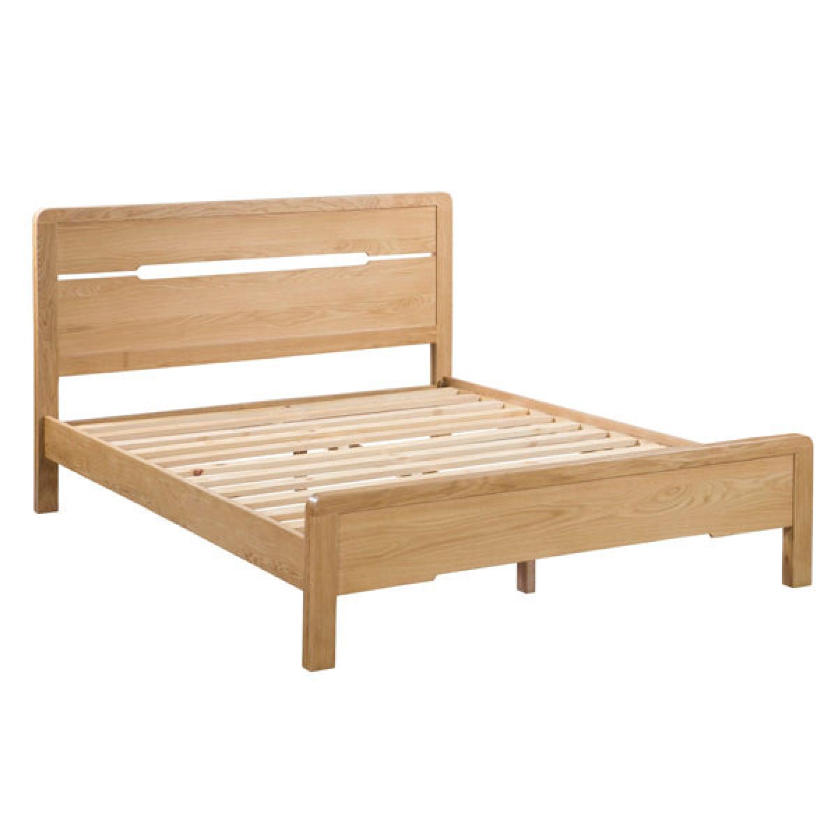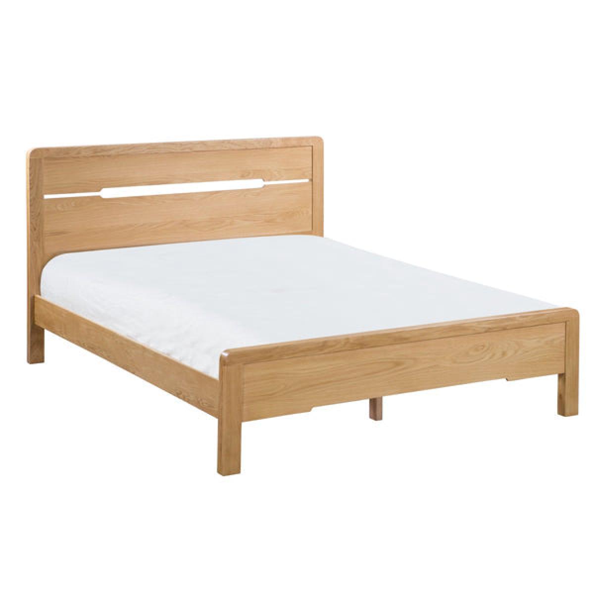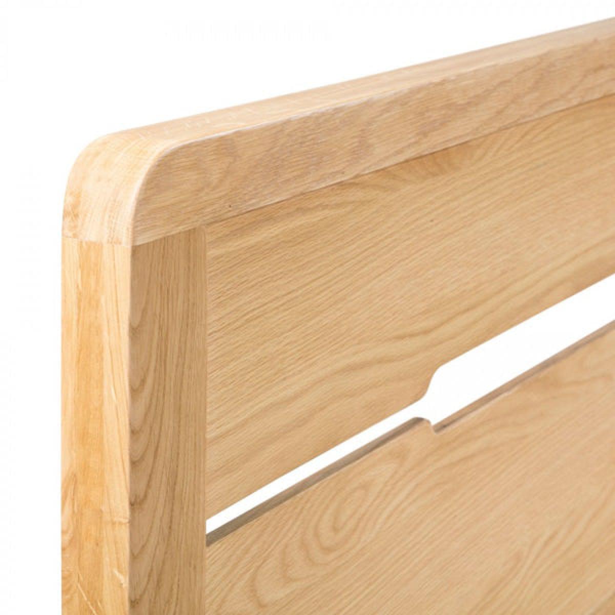 Crafted from solid white oak and oak veneers, the Curve combines clean lines with a gentle curved edging, adding a stunning touch to any bedroom. This Curve bed features a recessed handle styled headboard, to match the design of the bedroom range. With a solid wooden slatted base, to prolong mattress life, this Curve bed is available in 135cm double and 150cm king sizes. Part of the extensive Curve bedroom range from Julian Bowen. H:105 x W: 161 x D: 212 x Head H: 105 x Foot H: 42 cm.
