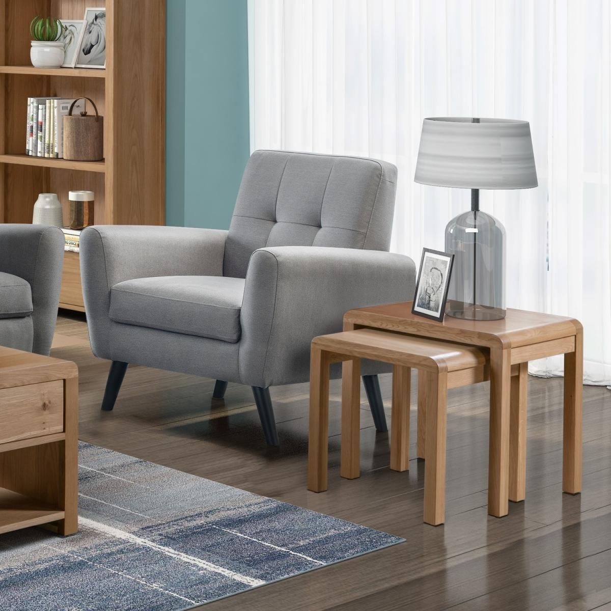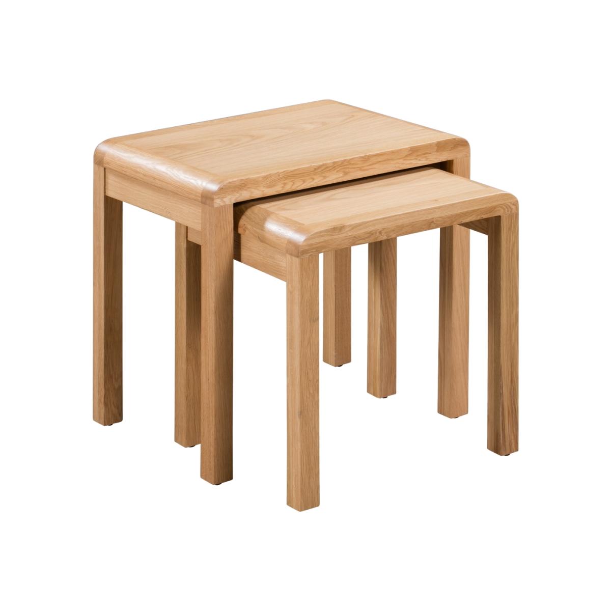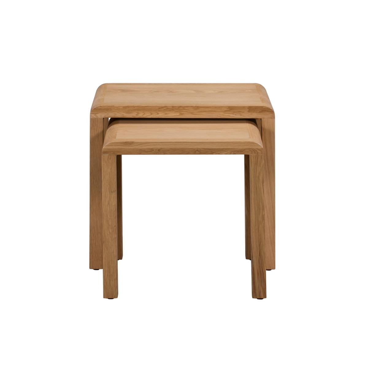 Dimensions W50 x H50 x D40 cm. Crafted from solid oak and oak veneers the Curve combines clean lines with a gentle curved edging adding a modern retro feel to any dining area. The Curve Nest of Tables offers great space saving versatility with two tables for additional stylish storage. Part of the Julian Bowen Curve Dining and Occasional Collection. Features. Crafted from Solid Oak and Oak Veneers Gentle curved edging for a modern retro feel. Offering space saving versatility with two tables for additional stylish storage. Part of the Julian Bowen Curve Dining and; Occasional Collection Assembly required..