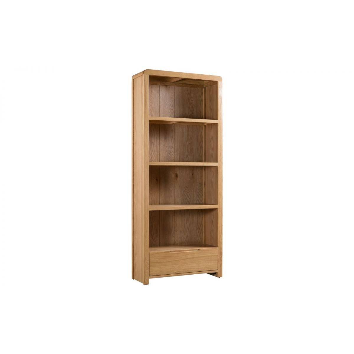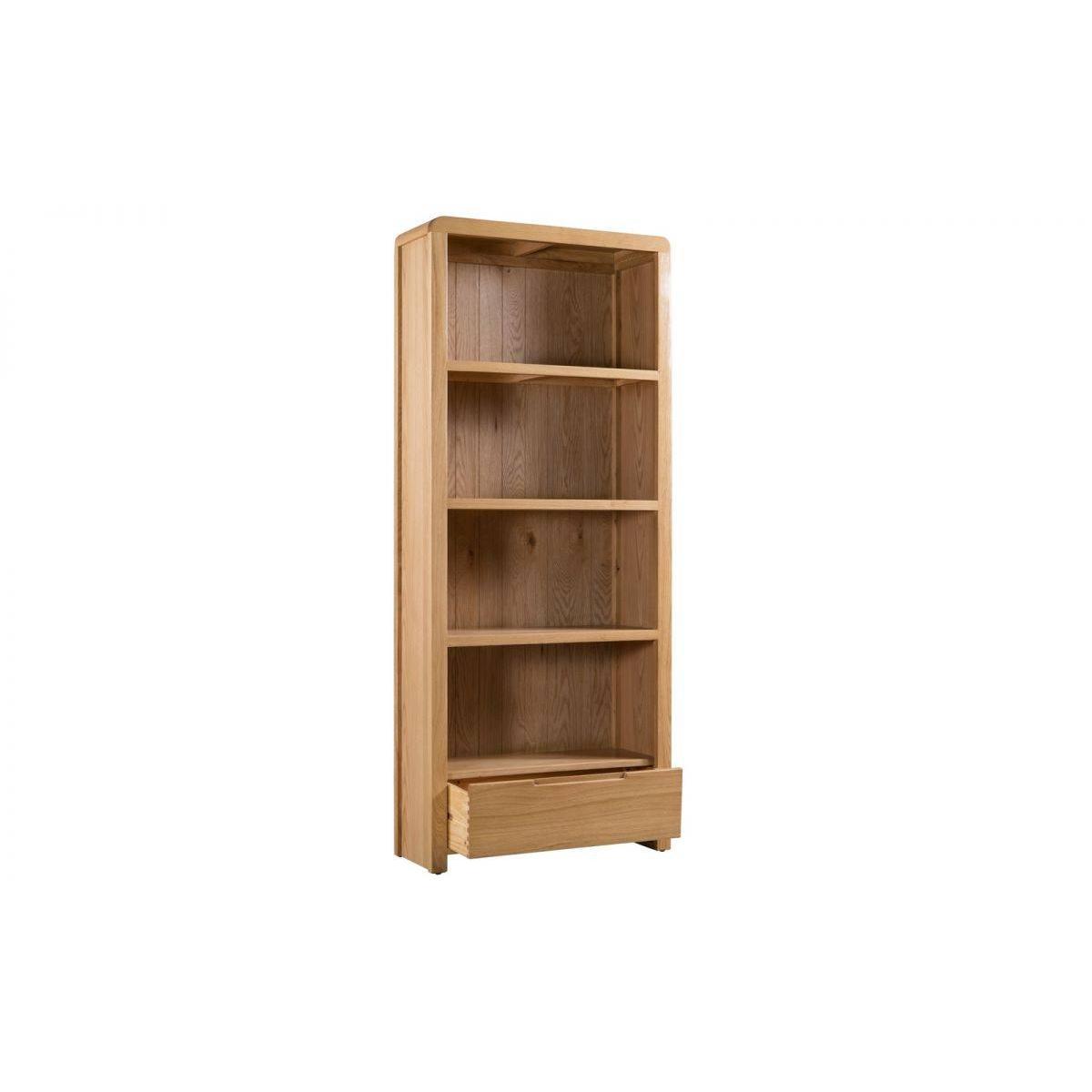 Crafted from solid oak and oak veneers, the Curve combines clean lines with a gentle curved ediging, adding a modern, retro feel to any dining area. The Curve Tall Bookcase offers four shelves with ample space, along with a large drawer. Part of the Julian Bowen Curve Dining and Occaional Collection. Dimensions: 30cm (D) x 80cm (W) x 190cm (H)