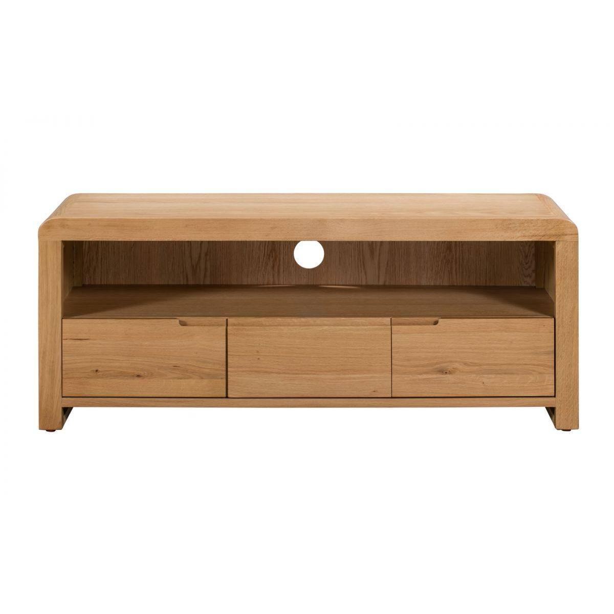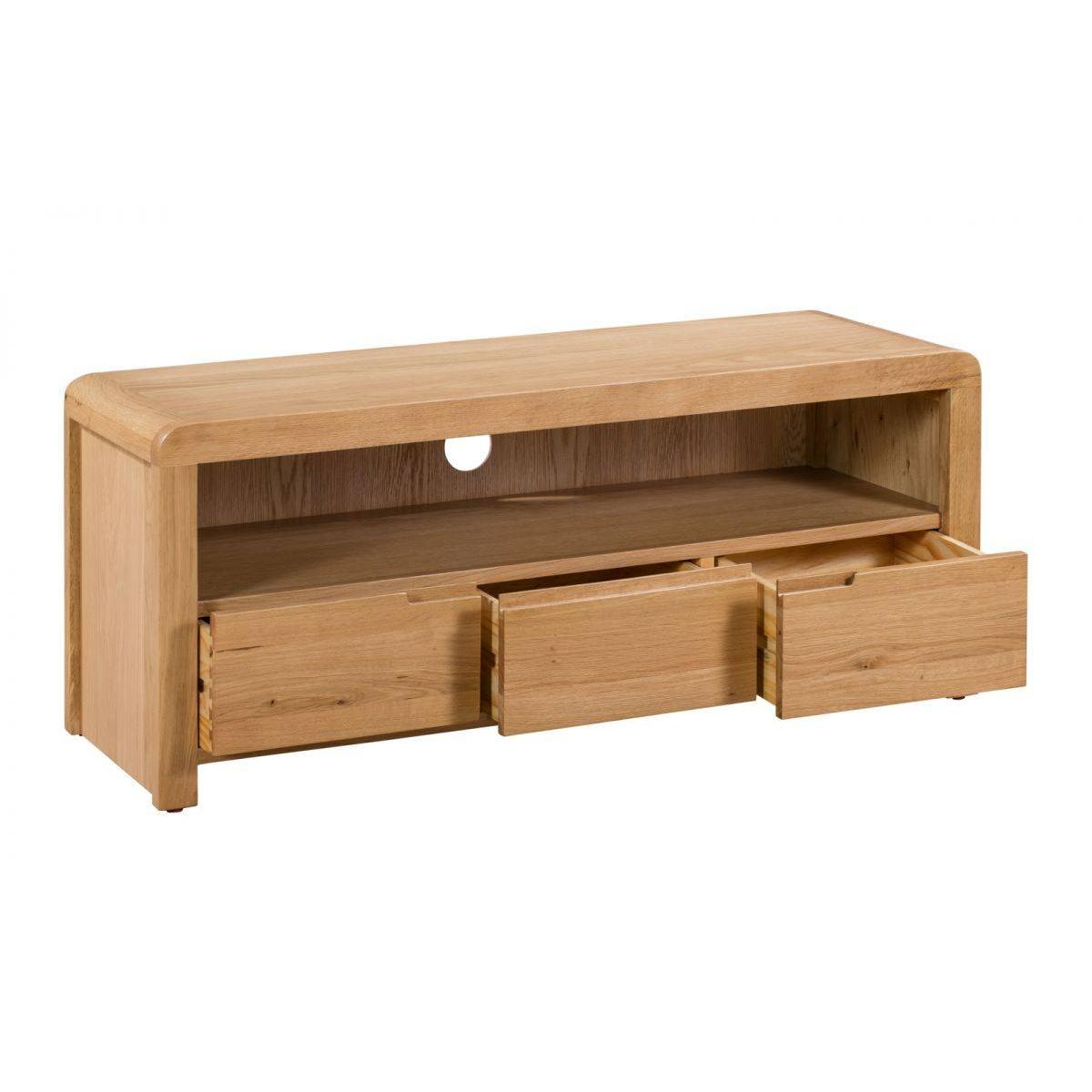 Crafted from solid oak and oak veneers, the Curve combines clean lines with a gentle curved ediging, adding a modern, retro feel to any dining area. The Curve TV Unit offers ample shelf space for set-top boxes, along with three small drawers perfect for DVDs and remote controls. Part of the Julian Bowen Curve Dining and Occaional Collection. Dimensions: 45cm (D) x 115cm (H) x 50cm (H)
