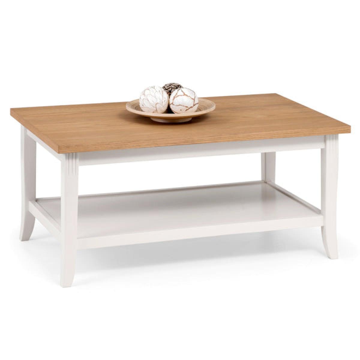 Crafted from solid rubberwood and a real oiled oak veneer 25mm top, this is the ideal coffee table for your home. In an elegant ivory lacquered finish, with delicately shaped legs complemented by exquisite detailing creating classic living room decor. A wide range of co-ordinating items are available in the Julian Bowen Davenport collection.