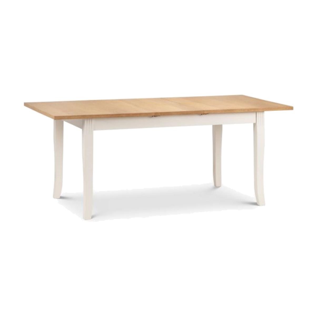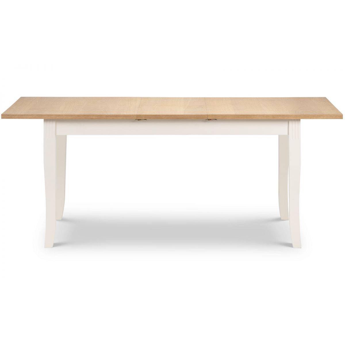 Crafted from solid rubberwood and a real oiled oak veneer 25mm top, this dining table is perfect for having dinner guests. An elegant ivory finish allows the Davenport table to match a wide range of decor, as well as bringing a touch of elegance. Featuring a butterfly extension system that is easy to use and stores within the table when not in use, creating more space for your guests when needed. A wide range of coordinating items are available in the Julian Bowen Davenport collection. Table extends from 150cm to 189cm in length. Assembly required. Please note, this product is an online exclusive and is not available to view in any of our stores.