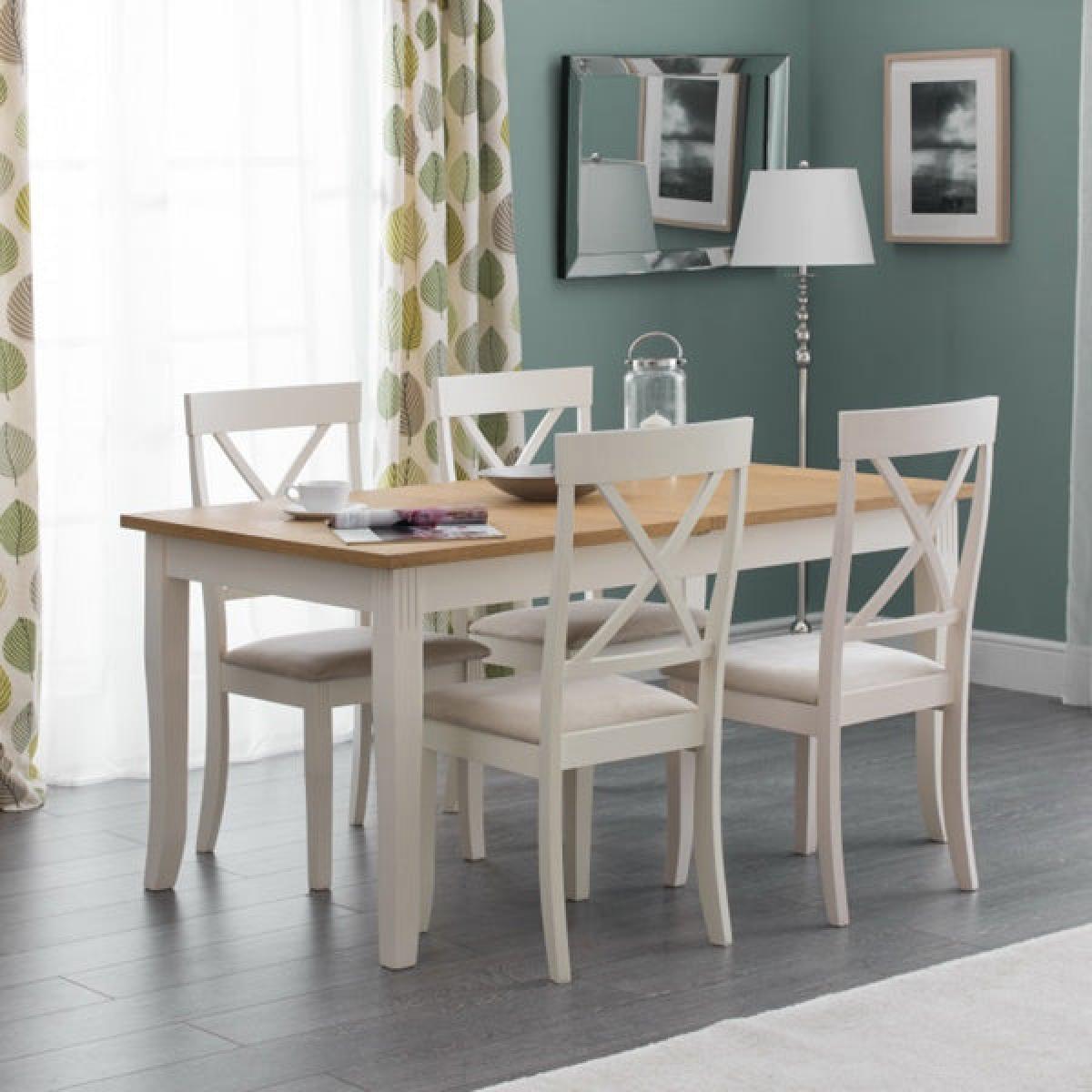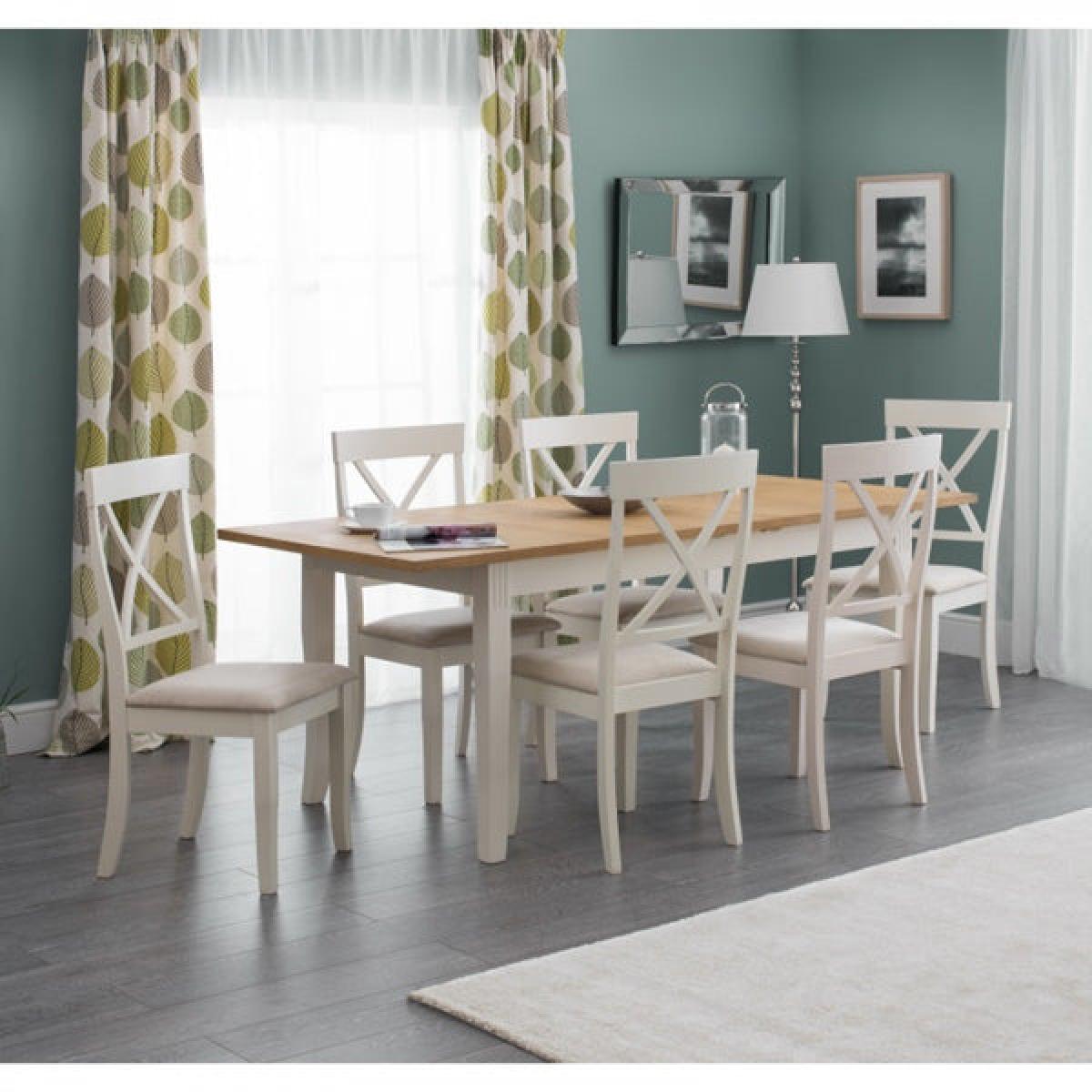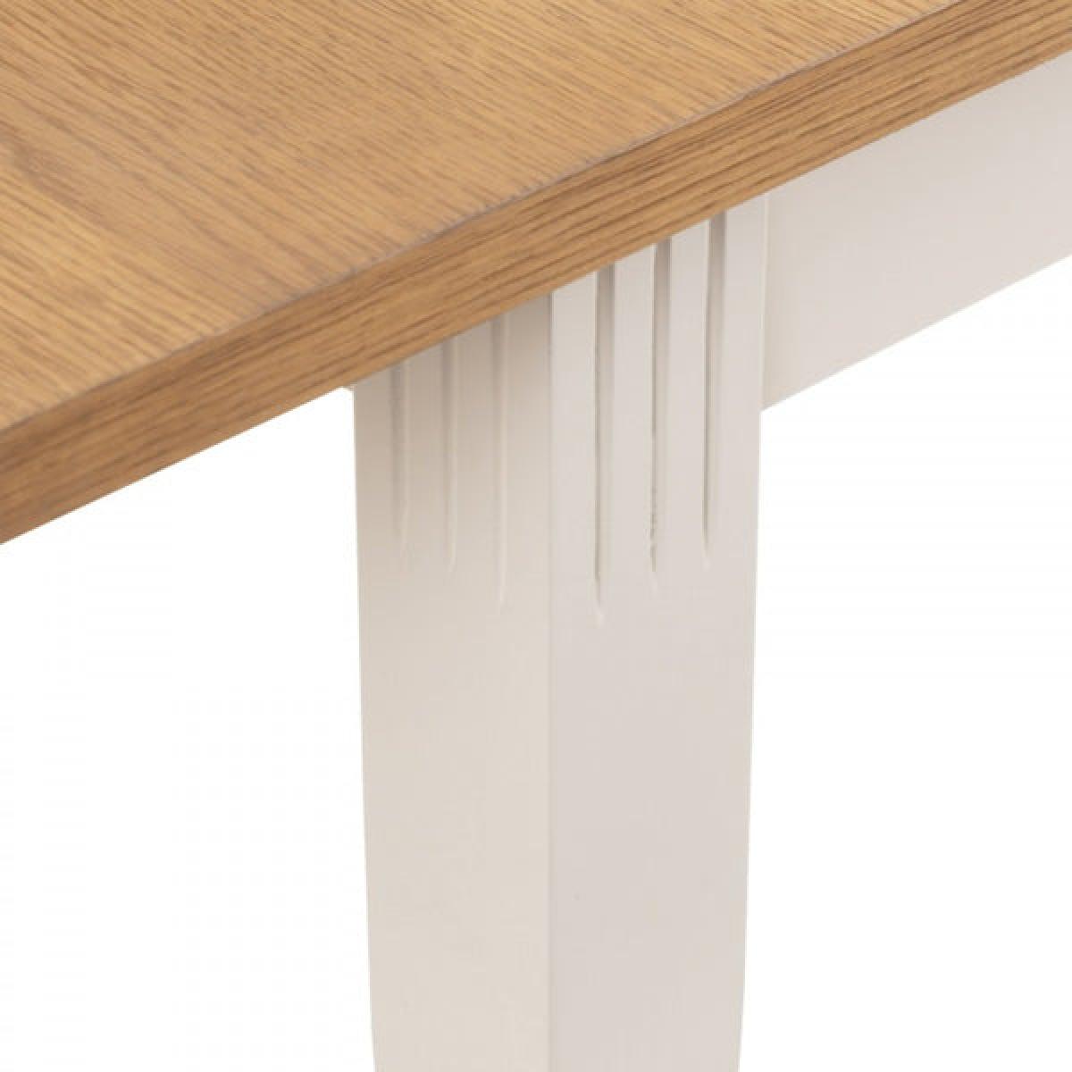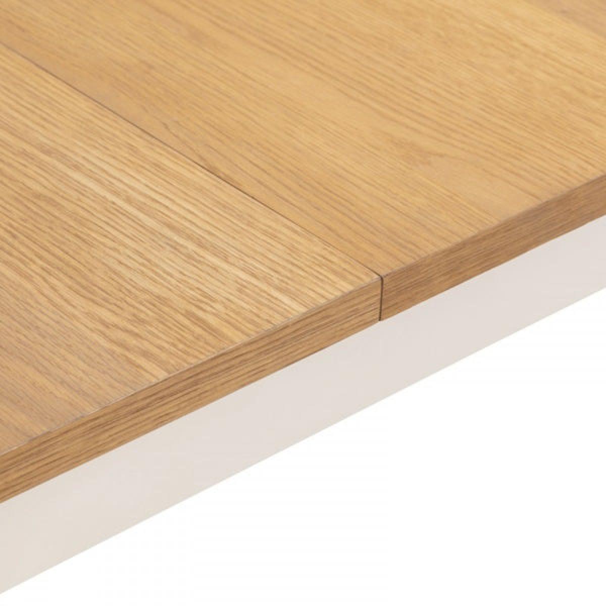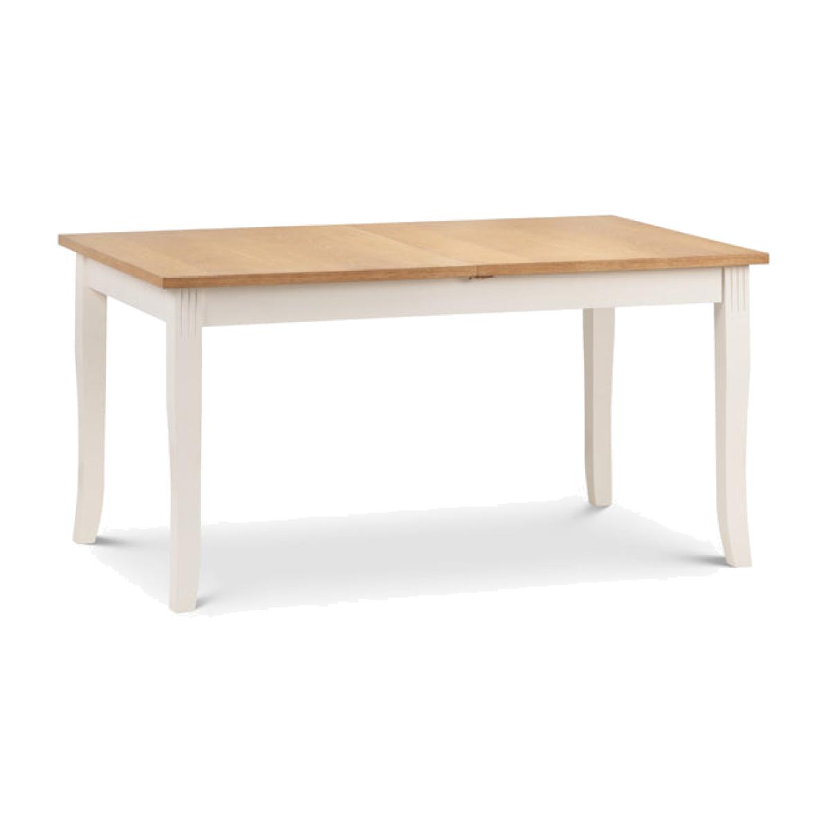 Crafted from solid rubberwood and a real oiled oak veneer 25mm top, this dining table is perfect for having dinner guests. An elegant ivory finish allows the Davenport table to match a wide range of décor, as well as brining a touch of elegance. Featuring a butterfly extension system that is easy to use and stores within the table when not in use, creating more space for your guests when needed. A wide range of coordinating items are available in the Julian Bowen Davenport collection.