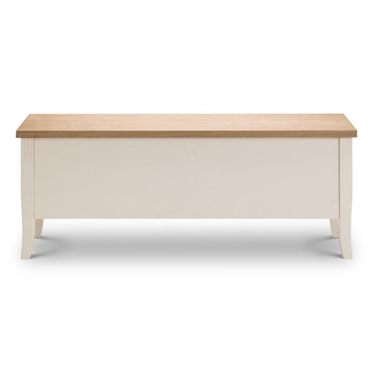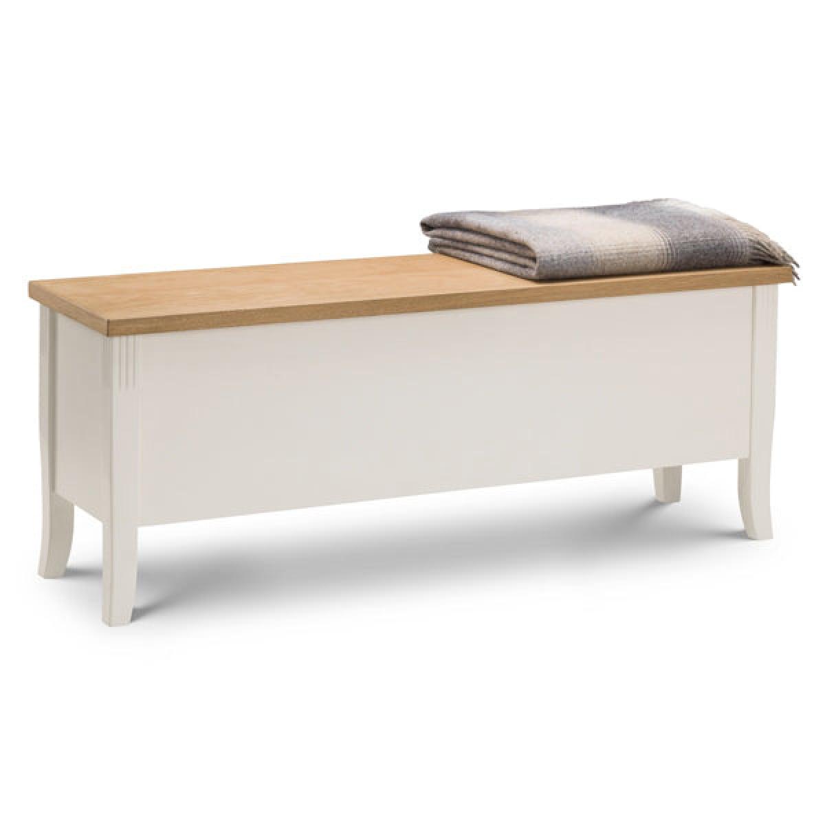 I love this storage bench as it combines practicality with timeless appeal, making it versatile for various interiors. Its clean, classic design and light wood top work particularly well in country-style, coastal, or modern schemes. The built-in storage adds functionality, perfect for stashing throws, shoes, or dining essentials, while the spacious seating makes it ideal for entrances, kitchens, or under windows. When styling, consider layering with cushions for extra comfort and pairing with a few decorative baskets underneath to keep essentials organised. It’s a handy piece that seamlessly marries form and function, making it a smart addition to both traditional and contemporary spaces.