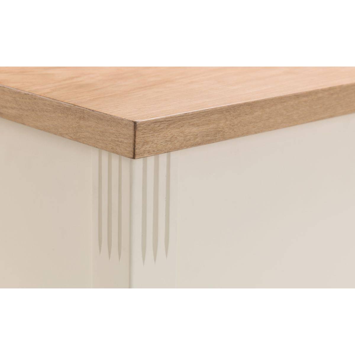 Crafted from solid rubberwood and a real oak veneer top, this dining bench is the perfect addition for having dinner guests. An elegant ivory finish adds a touch of elegance to any dining area. A wide range of co-ordinating items are available in the Julian Bowen Davenport collection. Dimensions: 34cm (D) x 120cm (W) x 46cm (H)
