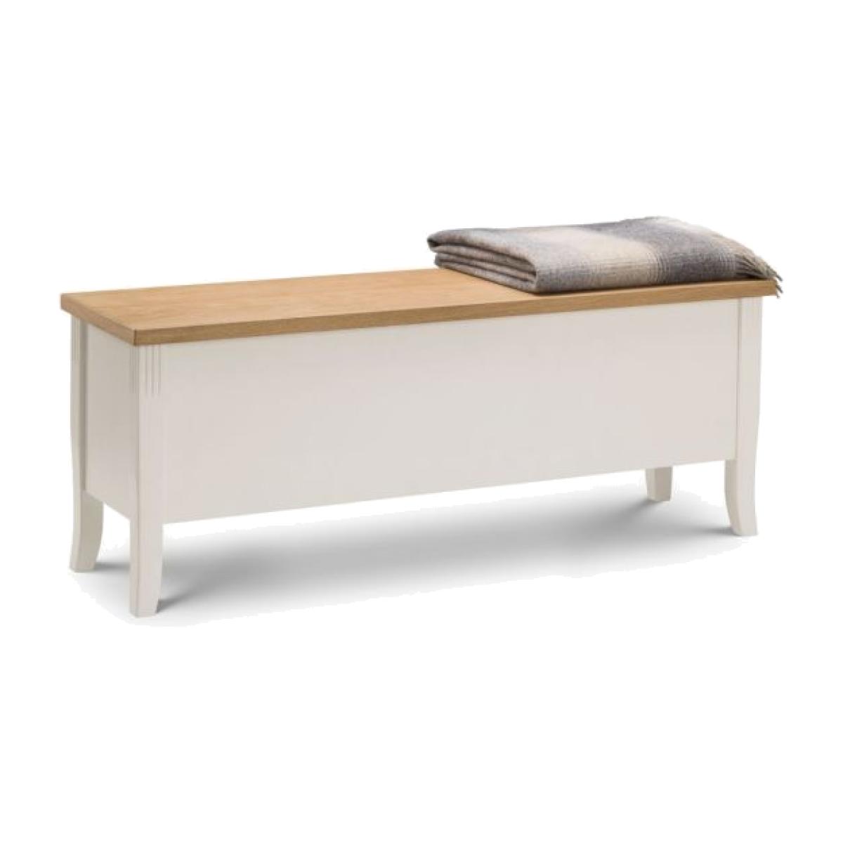 I love this storage bench because of its versatile design and practical storage solution. It’s perfect for even small spaces, offering a dual function as a seating area and a place to stash essentials, keeping clutter out of sight. The natural wood top combined with the neutral base makes it adaptable for both modern and traditional interiors - think cosy country cottages or sleek urban spaces. Styling wise, it works well at the foot of a bed, in a hallway for jackets and shoes, or as extra seating in a living room. For a polished look, consider adding a couple of stylish cushions or a throw on top, and pairing it with other light or neutral-toned furniture for a cohesive feel.
