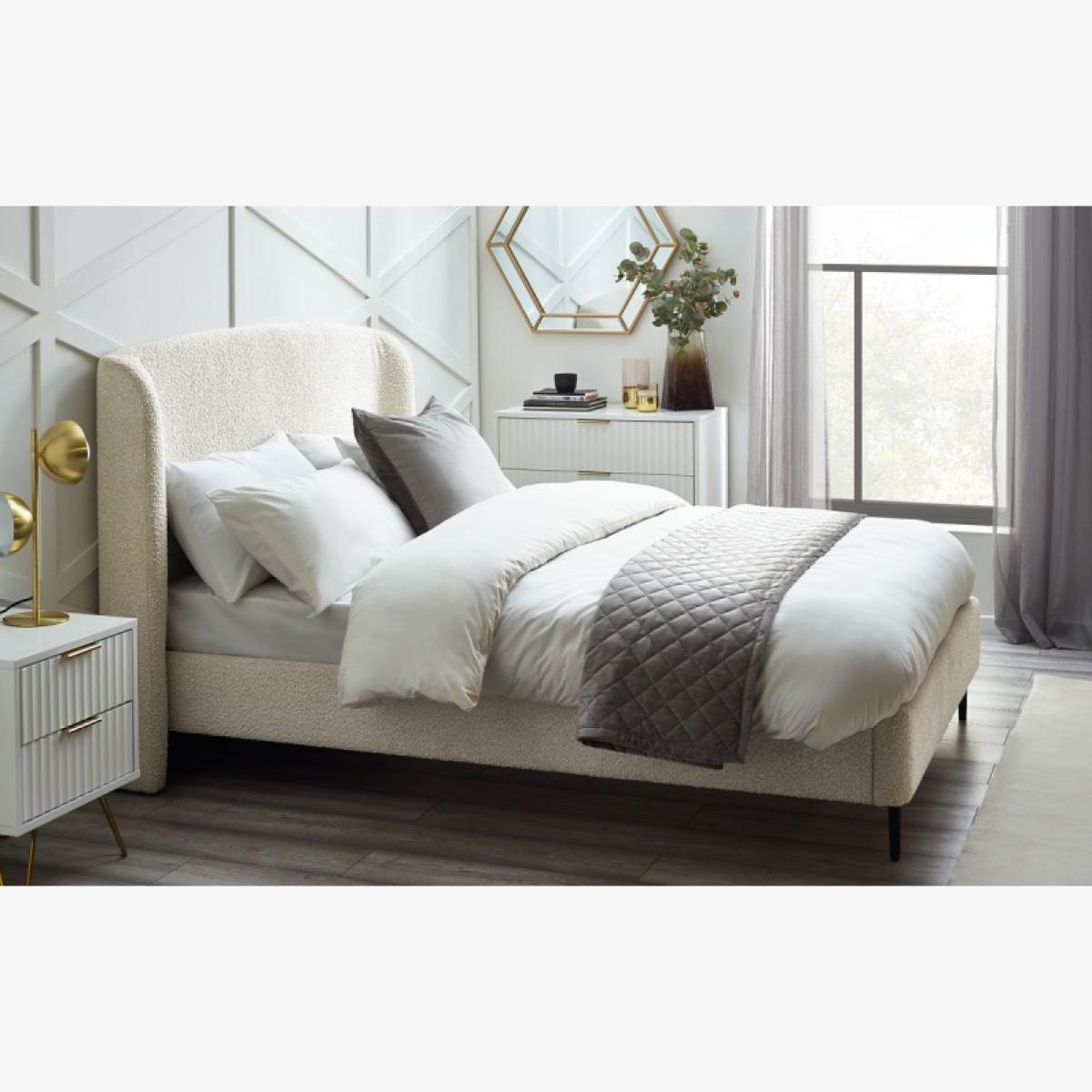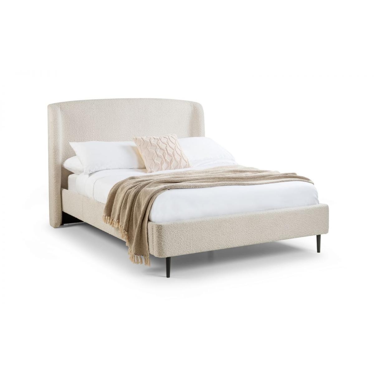 Introducing the Julian Bowen Eden Bouclé Bed in Ivory – where luxurious comfort meets timeless elegance. Designed to bring a touch of sophistication to your bedroom, this beautiful bed features a stunning ivory bouclé fabric that adds both texture and warmth to any space. The soft, inviting tones of ivory create a serene atmosphere, making it the perfect centerpiece for a restful and stylish sanctuary. Crafted with meticulous attention to detail, the Eden Bouclé Bed offers exceptional quality and durability. Its robust frame provides solid support, while the plush, padded headboard is perfect for leaning back and relaxing in comfort. The soft bouclé fabric not only exudes elegance but is also practical and durable, ensuring the bed remains a lasting investment for your home. Whether you're outfitting a master bedroom or guest room, this Julian Bowen Bed in Ivory effortlessly combines understated luxury with everyday comfort. Its versatile design pairs beautifully with both modern and classic décor, adding a refined touch to any bedroom. Enhance your sleep space with this stunning bed, and indulge in the perfect blend of style, comfort, and sophistication. Features: Classy and elegant design Curved headboard Finished in ivory boucle with black legs 12 Month Guarantee Dimensions: Double: Height 117cm Width 161cm Depth 205cm King; Height 117cm Width 176cm Depth 217cm All screens vary in colour reproduction and whilst every effort has been made to display the colour as accurately as possible it is for guidance only.