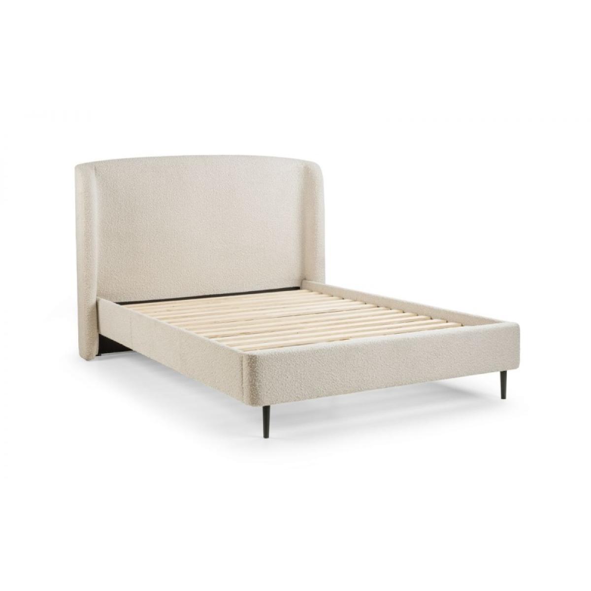 Introducing the Julian Bowen Eden Bouclé Bed in Ivory – where luxurious comfort meets timeless elegance. Designed to bring a touch of sophistication to your bedroom, this beautiful bed features a stunning ivory bouclé fabric that adds both texture and warmth to any space. The soft, inviting tones of ivory create a serene atmosphere, making it the perfect centerpiece for a restful and stylish sanctuary. Crafted with meticulous attention to detail, the Eden Bouclé Bed offers exceptional quality and durability. Its robust frame provides solid support, while the plush, padded headboard is perfect for leaning back and relaxing in comfort. The soft bouclé fabric not only exudes elegance but is also practical and durable, ensuring the bed remains a lasting investment for your home. Whether you're outfitting a master bedroom or guest room, this Julian Bowen Bed in Ivory effortlessly combines understated luxury with everyday comfort. Its versatile design pairs beautifully with both modern and classic décor, adding a refined touch to any bedroom. Enhance your sleep space with this stunning bed, and indulge in the perfect blend of style, comfort, and sophistication. Features: Classy and elegant design Curved headboard Finished in ivory boucle with black legs 12 Month Guarantee Dimensions: Double: Height 117cm Width 161cm Depth 205cm King; Height 117cm Width 176cm Depth 217cm All screens vary in colour reproduction and whilst every effort has been made to display the colour as accurately as possible it is for guidance only.