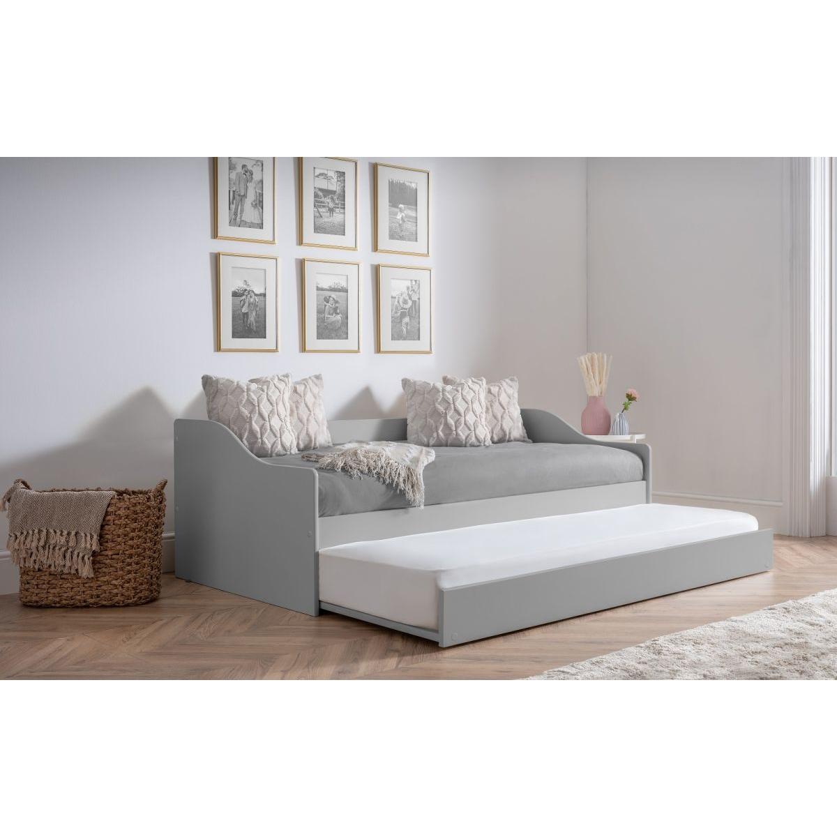 Introducing the Julian Bowen Elba Day Bed in Dove Grey – a beautifully designed piece that effortlessly blends style, comfort, and practicality. With its soft, serene dove grey finish, this day bed adds a touch of contemporary elegance to any space, making it an ideal addition to a bedroom, guest room, or home office. The neutral tone of dove grey enhances the room’s décor, creating a calm, welcoming environment. Crafted with quality and durability in mind, the Elba Day Bed offers sturdy support while providing a comfortable space for lounging or sleeping. Its minimalist design, with clean lines and a timeless silhouette, suits a variety of interior styles – from modern to traditional. The spacious frame ensures ample comfort for both sitting and sleeping, making it perfect for small spaces or multi-functional rooms. Whether used for relaxing during the day, providing extra seating, or offering a cozy spot for guests to sleep, the Julian Bowen Day Bed offers both style and versatility. It’s the ideal solution for those looking for a stylish and functional piece that adapts to your home’s needs, all while exuding understated elegance. Please note that not all mattresses are compatible for this product. , We recommend the following: Top Mattress: 90cm Single Mattress Underbed Mattress: Capsule Reflex Roll-Up 90cm Mattress or Capsule Memory Reflex Roll-Up 90cm Mattress Features: Classic pull-out under bed Sleek curved design Perfect for guests 12 Month Guarantee Dimensions: Height 66cm Width 97cm Depth 194cm All screens vary in colour reproduction and whilst every effort has been made to display the colour as accurately as possible it is for guidance only.