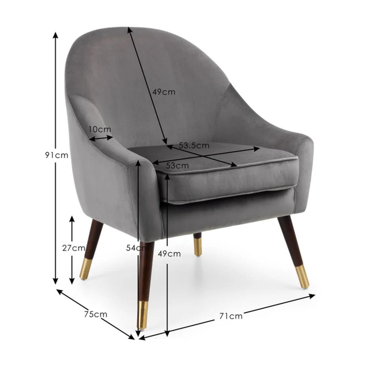 Add a touch of sophistication to any room with the Julian Bowen Elliot Armchair. Expertly crafted with a beautifully curved silhouette, this elegant piece pairs luxurious grey velvet upholstery with solid oak legs, subtly accented with timeless gold tips – a perfect blend of comfort and contemporary style. Chic & Contemporary Design: With its soft curves, sleek profile, and rich textures, the Elliot armchair brings modern elegance to living rooms, bedrooms, or stylish office spaces. Its grey velvet finish and gold detailing elevate the look, making it a true statement piece. Comfort Meets Style: Sink into plush comfort with a generously padded seat and supportive backrest. The ergonomic design encourages good posture, offering both relaxation and refinement – ideal for reading, lounging, or entertaining guests. Built to Last: Constructed with a durable internal frame and sturdy oak legs, this armchair is designed for long-term use. High-quality materials ensure reliable support and everyday functionality. Dimensions: Width: 75cm Depth: 80cm Height: 85cm Seat Height: 45cm Arm Height: 60cm What’s Included: One Julian Bowen Elliot Armchair. Minimal assembly required – simply attach the legs. All necessary tools and easy-to-follow instructions are provided for quick setup. Please note All screens vary in colour reproduction and whilst every effort has been made to display the colour as accurately as possible it is for guidance only.