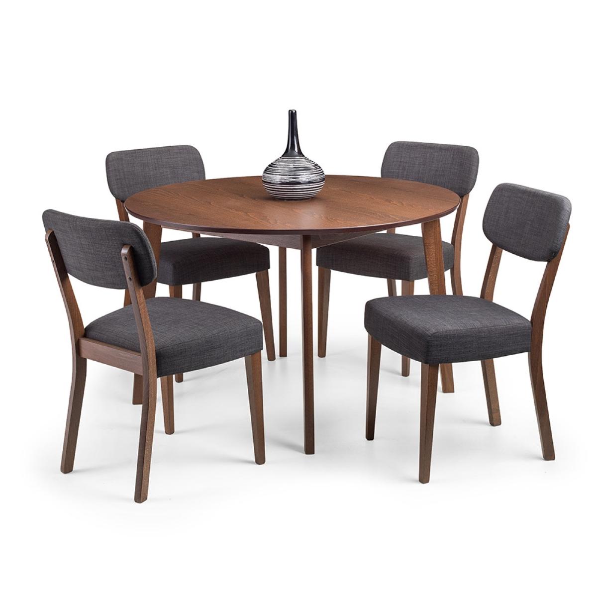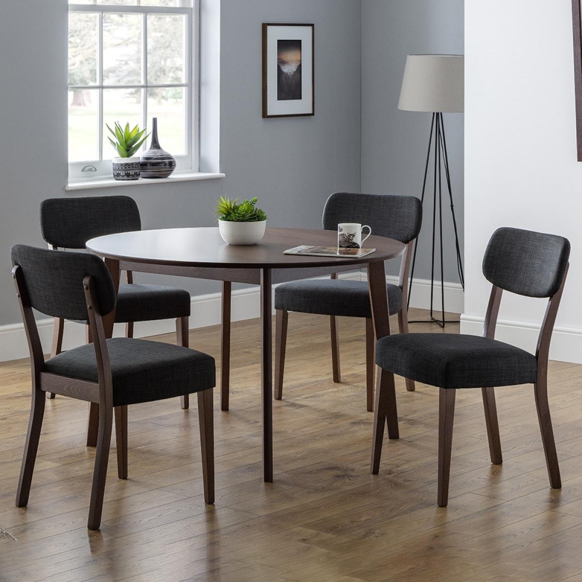 The Farringdon Dining Set from Julian Bowen will be the perfect spot for dinner and drinks with friends, spending the evening catching up over a delicious meal and maybe a glass or two of wine, what could be better. The gorgeous round table with its walnut effect finish will fit seamlessly into a variety of decors complemented by the stylish open-backed dining chairs upholstered in a beautiful grey linen fabric. Style up your table with a few candles when the evening draws in creating a warm and inviting ambience.