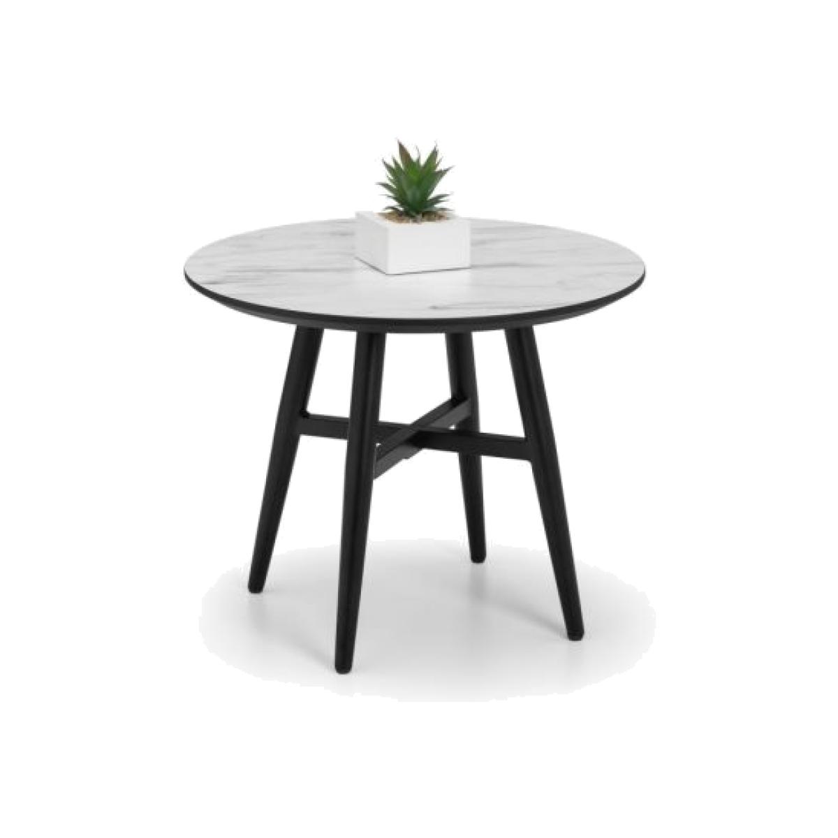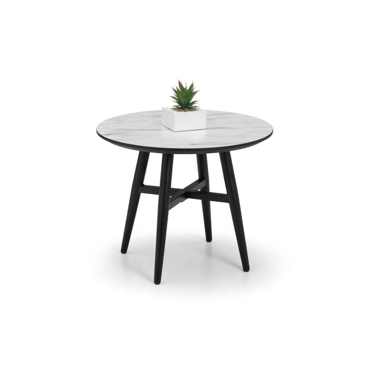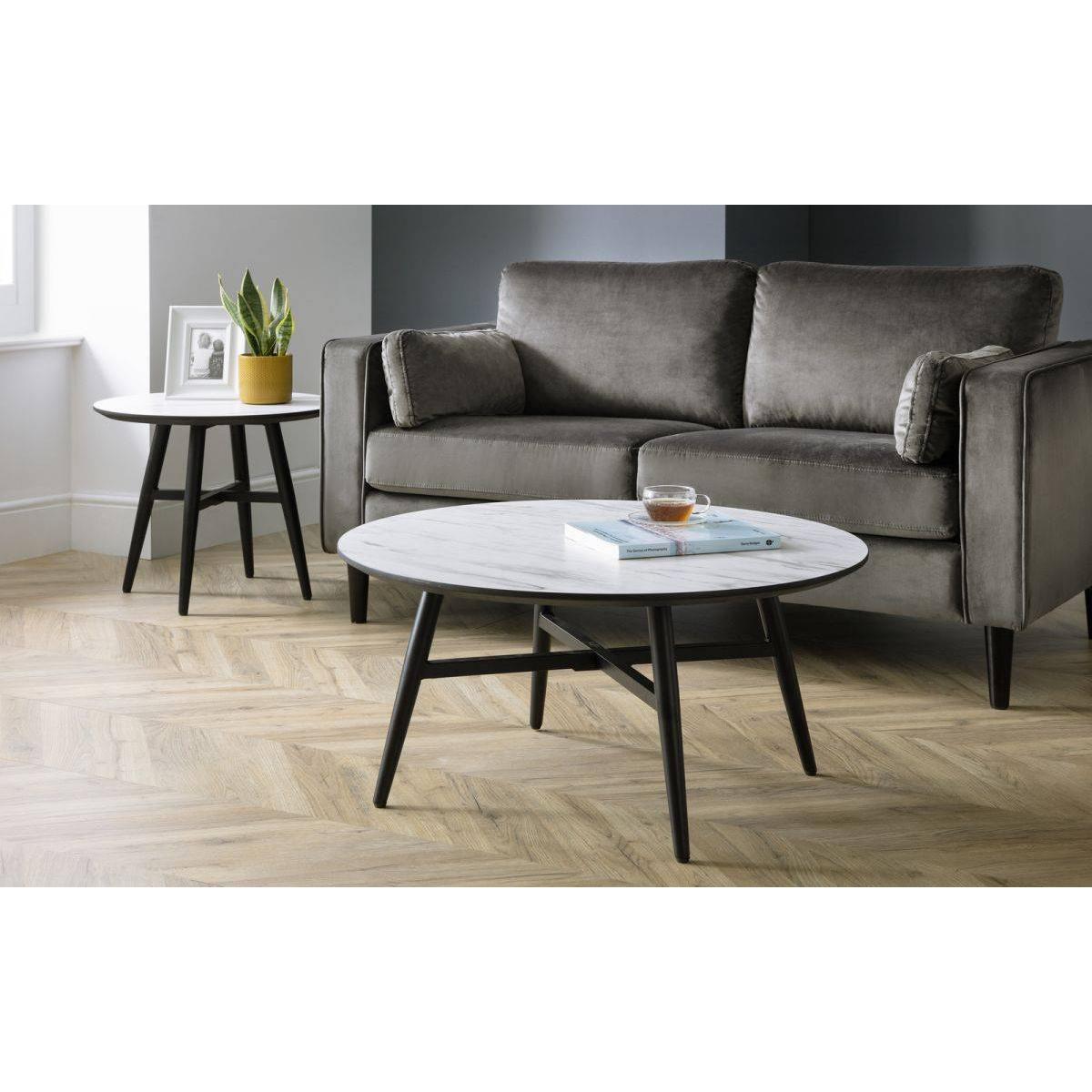 With cool, monochrome tones, the Firenze lamp table offers a contemporary, timeless design that adds charm and style to any room. Crafted from MDF and Powder Coated Steel, this sturdy round lamp table is topped with a white marble effect and black finished cross legs, adding an impressive centrepiece to your living space. Matching Coffee table available. Dimensions: 60cm (D) x 60cm (D) x 49cm (H) Requires assembly. Please note, this product is an online exclusive and is not available to view in any of our stores.