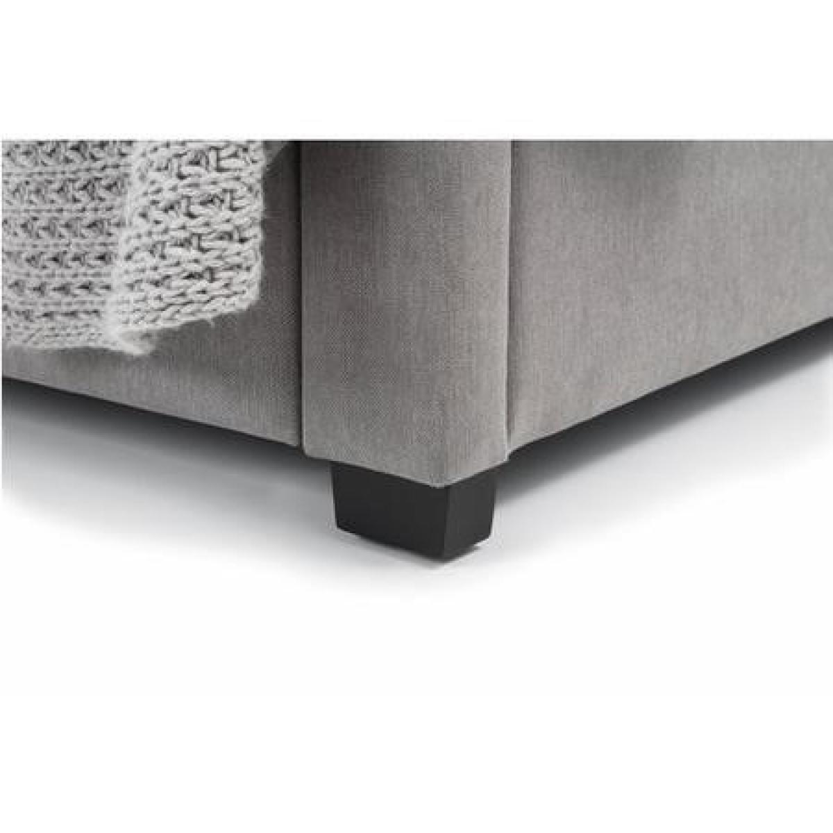 Dimensions H113 x W146 x D212cm Features. Upholstered in a luxurious grey linen fabric with black legs. Featuring a deep buttoned headboard4 Spacious drawers two at the end and one each side. Available in 135cm Double and 150cm King Sizes Perfect match for the Julian Bowen Clermont bedroom collection..