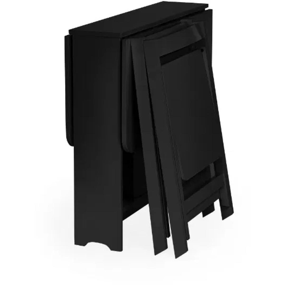 Perfect for modern living, the Julian Bowen Gatan Small Gateleg Table with 2 Chairs offers a clever and compact dining solution without compromising on style. Finished in a sleek black, this versatile set is ideal for smaller kitchens, dining areas, or studio flats where space is at a premium. The gateleg design allows you to fold the table down neatly when not in use, while the two matching chairs tuck effortlessly underneath – keeping your room clutter-free and functional. Whether you're enjoying a cosy breakfast or an evening meal for two, this space-saving gem delivers both practicality and contemporary charm. Features: Space-saving gateleg design with fold-down leaves Includes 2 matching chairs that store neatly within the table Finished in a modern black for a sleek, versatile look Ideal for compact spaces, student accommodation or first homes Crafted by Julian Bowen – known for quality and style A smart choice for stylish small-space living. Dimensions: Height: 70cm Depth: 100cm Width: 80cm