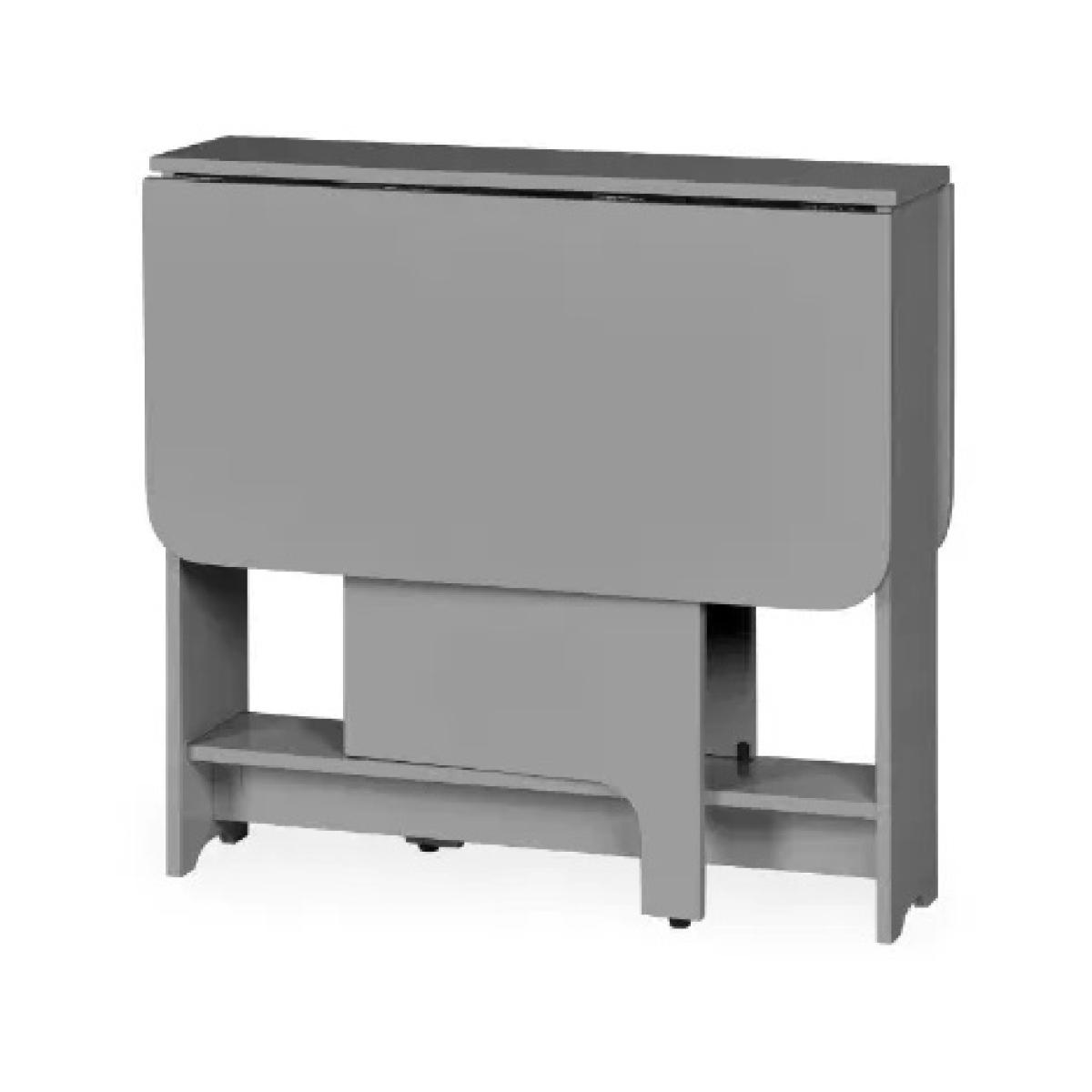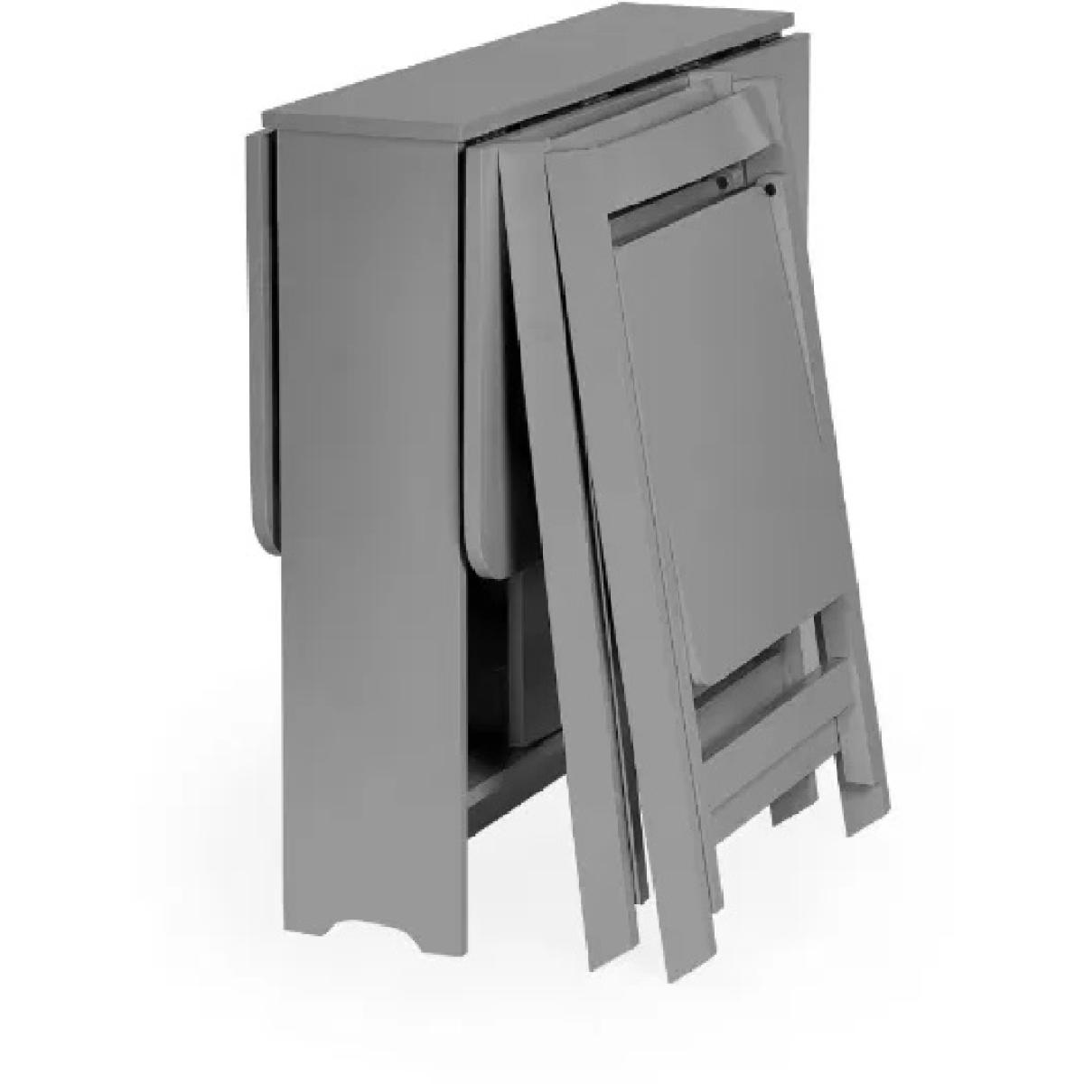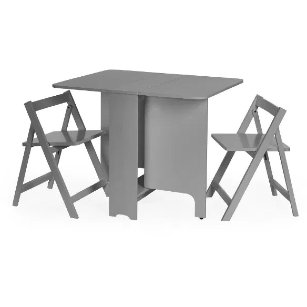 Add a touch of smart functionality to your home with the Julian Bowen Gatan Small Gateleg Table and 2 Chairs in a timeless grey finish. Designed for modern living, this compact dining set is perfect for small spaces such as flats, studios, or multifunctional rooms. With a clever foldaway design, the table features a gateleg mechanism that allows both sides to fold down neatly when not in use. The two chairs are designed to fit perfectly within the unit, making storage effortless and keeping your space tidy and organised. Whether you're enjoying a quiet dinner for two or need a practical surface for working or crafting, the Gatan set combines convenience, versatility, and contemporary style. Features: Compact gateleg table with two matching foldaway chairs Chairs store neatly within the table when not in use Durable solid rubberwood construction with a grey painted finish Drop-leaf design for easy extension and folding Ideal for dining, home office or occasional use Perfect for small homes, apartments, or rooms where space is limited Measurements: Table Dimensions: Width: 90cm (extended) / 16cm (folded) Depth: 53cm Height: 74cm Chair Dimensions (each): Width: 45cm Depth: 47cm Height: 76cm