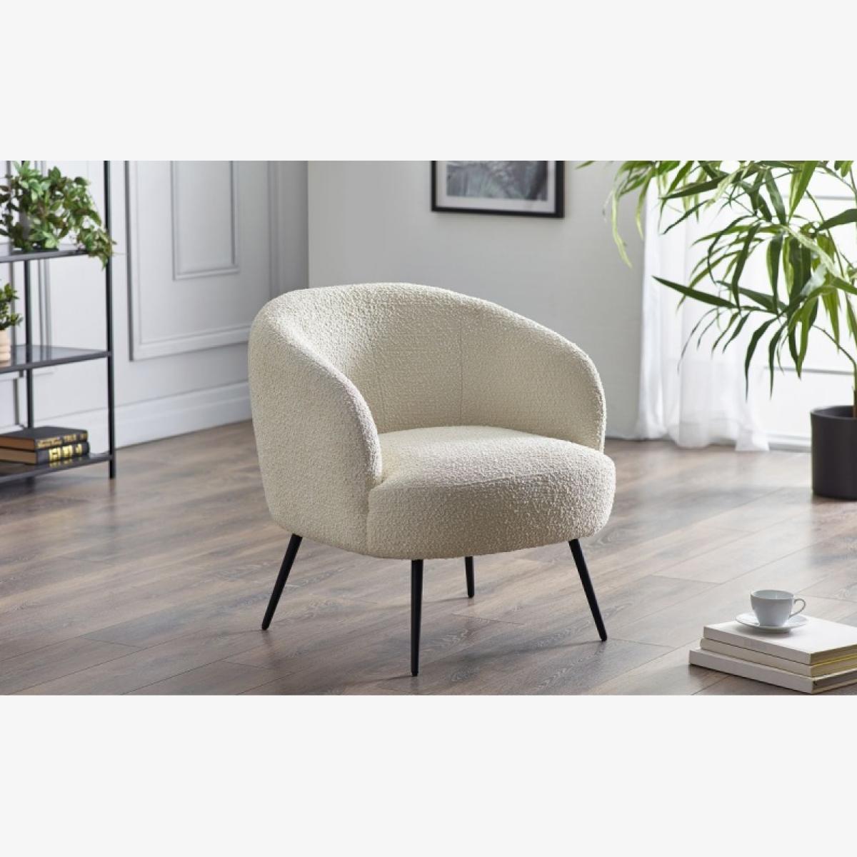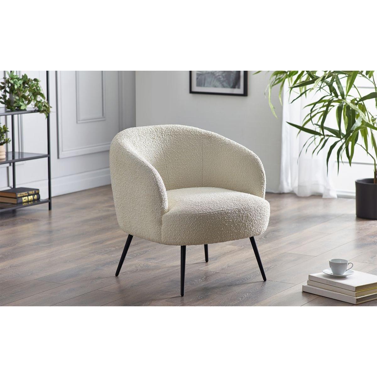 Introduce chic, contemporary comfort to your home with the Julian Bowen Gigi Bouclé Accent Chair in elegant Ivory. Upholstered in a beautifully soft bouclé fabric, this eye-catching chair blends modern style with cosy texture, making it the perfect statement piece for any living room, bedroom, or reading nook. The Gigi chair features a gently curved backrest and generously cushioned seat for added comfort, all supported by sturdy black tapered legs for a sleek, minimalist finish. Whether styled alone or as part of a pair, it’s designed to elevate your interior with both comfort and sophistication. Features: Upholstery: Soft-touch ivory bouclé fabric Frame:Durable wooden construction Legs:Black tapered legs for a modern look Compact, stylish design – ideal for smaller spaces Perfect for living rooms, bedrooms, or home offices Assembly required Dimensions: Height: 76.5cm Length: 74cm Width: 72cm Add a touch of refined texture and contemporary charm to your home with the Gigi Accent Chair—where comfort meets understated elegance. Please note All screens vary in colour reproduction and whilst every effort has been made to display the colour as accurately as possible it is for guidance only.