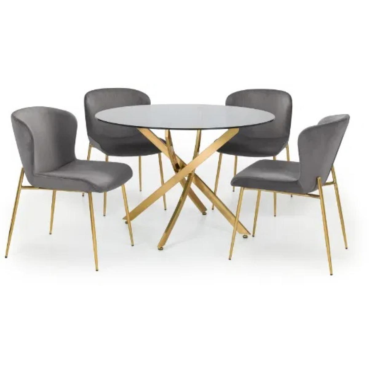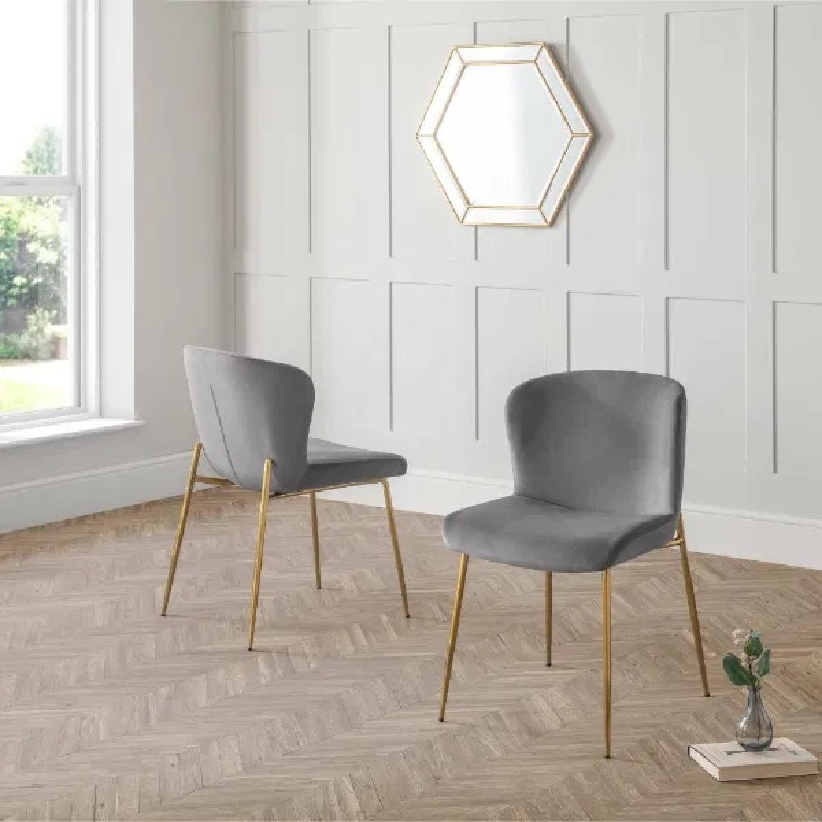 The Harper Dining Chair by Julian Bowen combines minimalist design with luxurious materials. Upholstered in smooth grey velvet, this chair offers both style and comfort, making it a sophisticated addition to any dining space.  Features: Smooth velvet upholstery for a refined and soft finish Minimalist design with luxurious materials for contemporary appeal Comfortable and practical for everyday use Available in dusky pink, grey, or blue 12-month product guarantee Dimensions: Height: 81 cm Width: 49 cm Depth: 60 cm The Julian Bowen Harper Dining Chair brings elegance and practicality together, enhancing both casual and formal dining settings. Please note All screens vary in colour reproduction and whilst every effort has been made to display the colour as accurately as possible it is for guidance only.