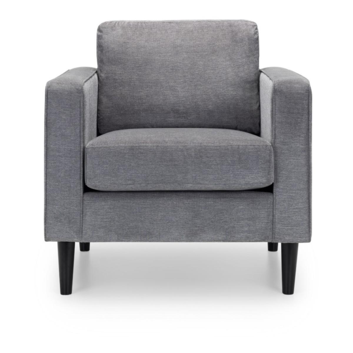 Add a touch of modern elegance and cosy comfort to your living space with the Julian Bowen Hayward Chair. Upholstered in luxuriously soft grey chenille fabric, this stylish armchair is the perfect companion to the Hayward sofa range or a standout accent piece on its own. Featuring deep cushioning, and clean, contemporary lines, the Hayward Chair offers a supportive and relaxing seating experience. The subtle grey tone complements a wide variety of interior décors, making it a versatile choice for any room. Whether you're creating a reading nook or completing your lounge layout, the Hayward Chair brings comfort, quality, and style together effortlessly. Features: Upholstered in soft grey chenille fabric for a plush feel Deep foam-filled seat and back cushions for lasting comfort Sturdy wooden frame for reliable durability Perfect as a standalone piece or part of the Hayward collection Home Assembly Required Dimensions: Height 86cm Width 86cm Depth 89cm Seat Height 45cm All screens vary in colour reproduction and whilst every effort has been made to display the colour as accurately as possible it is for guidance only.