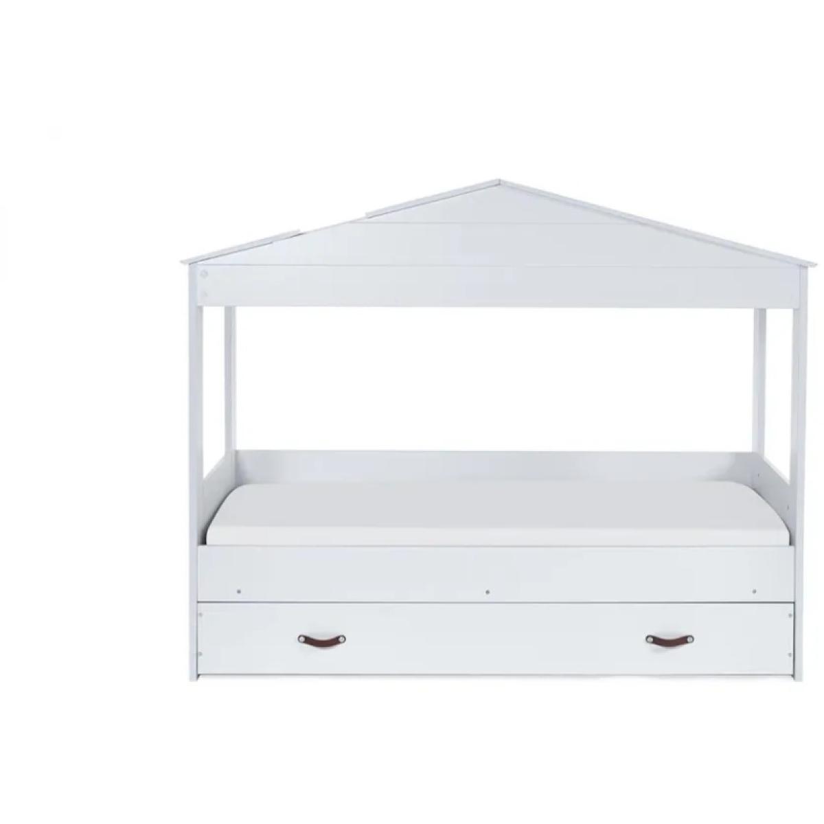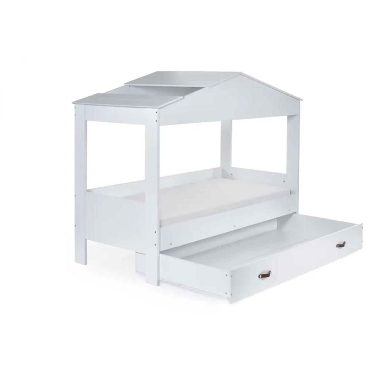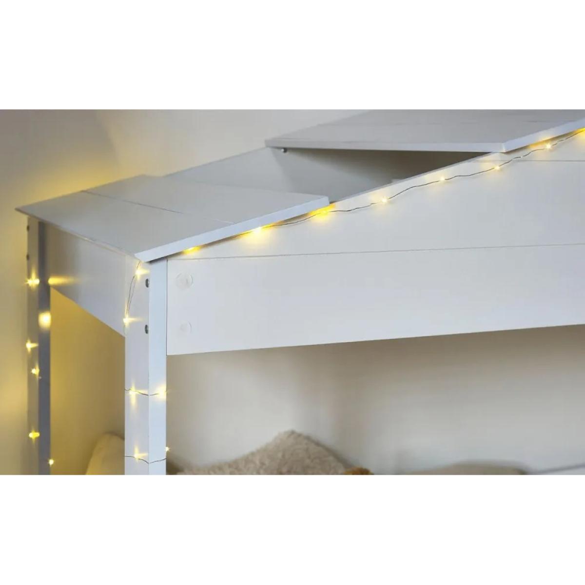 Step into the whimsical world of the Julian Bowen Hazel Low Sleeper – a charming white hut house bed that sparks joy and imagination. The paneled roof and inviting gap for stargazing adventures turn bedtime into a magical experience for your little ones. With a large drawer underneath, storing treasures and bedtime essentials is a breeze, creating a clutter-free haven. Crafted with the safety of your children in mind, two trap handles make it easy for little hands to access their dreamy retreat. Transform your child's room into an enchanting space where bedtime stories come to life and dreams take flight. Features: A charming white hut house bed that sparks joy and imagination. The paneled roof and inviting gap create a magical experience, turning bedtime into a whimsical journey filled with stargazing adventures. With a large drawer underneath, storing treasures and bedtime essentials is a breeze, ensuring a clutter-free haven for your child's room. Crafted with the safety of your children in mind, two trap handles make it easy for little hands to access their dreamy retreat securely. 12 month product guarantee Dimensions: Height 162.6cm Width 99.4cm Depth 202.9cm All screens vary in colour reproduction and whilst every effort has been made to display the colour as accurately as possible it is for guidance only.
