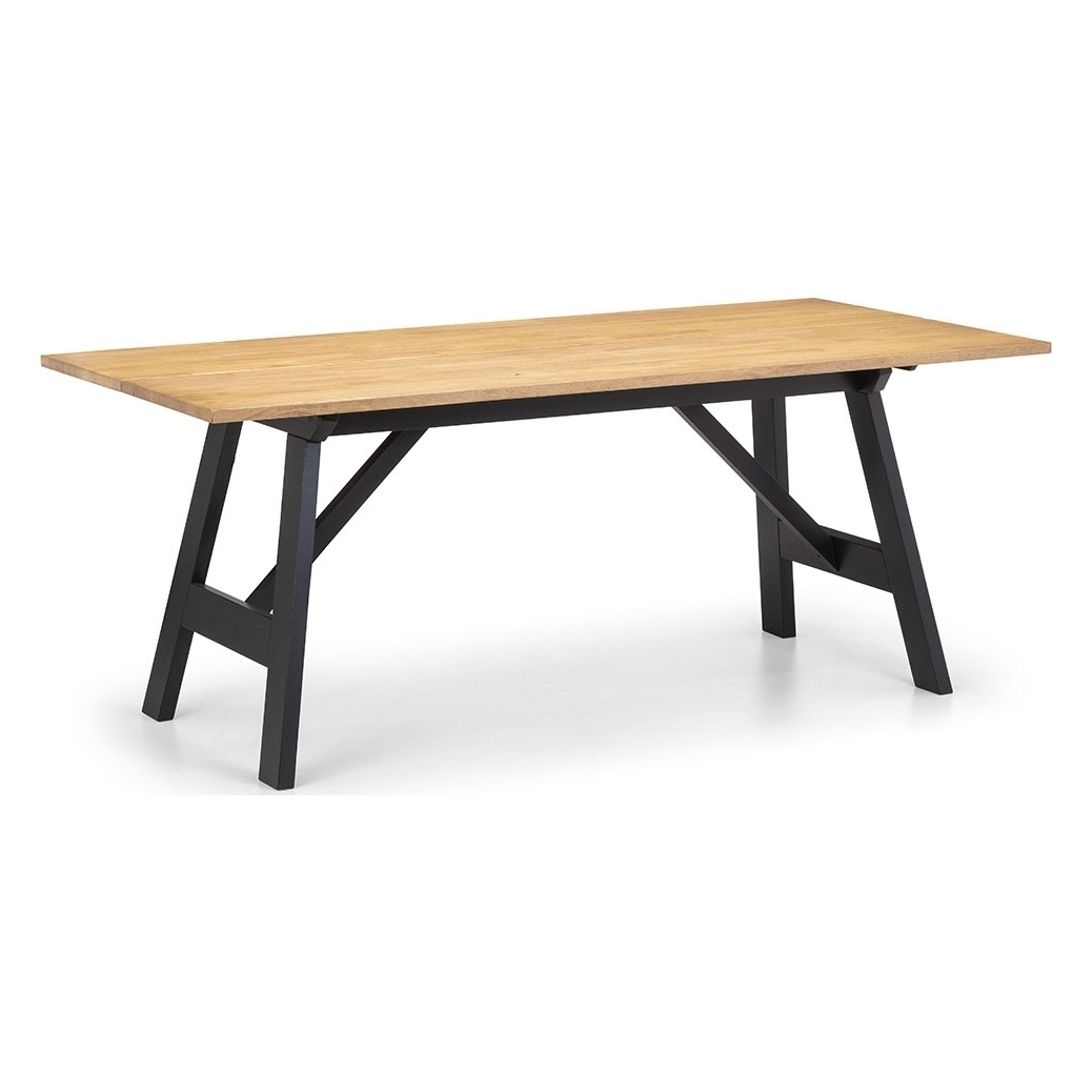 With a solid oak top and gorgeous black trestle style legs, the Hockley Dining Table from Julian Bowen will bring a modern touch to your home. Perfect in the kitchen or the dining room, able to seat up to 6 people, this stunning table will be a great addition to those Sunday roasts or a night of wining and dining friends. Why not add the matching chairs and bench to complete the look. Your dining area will have never looked so good!.