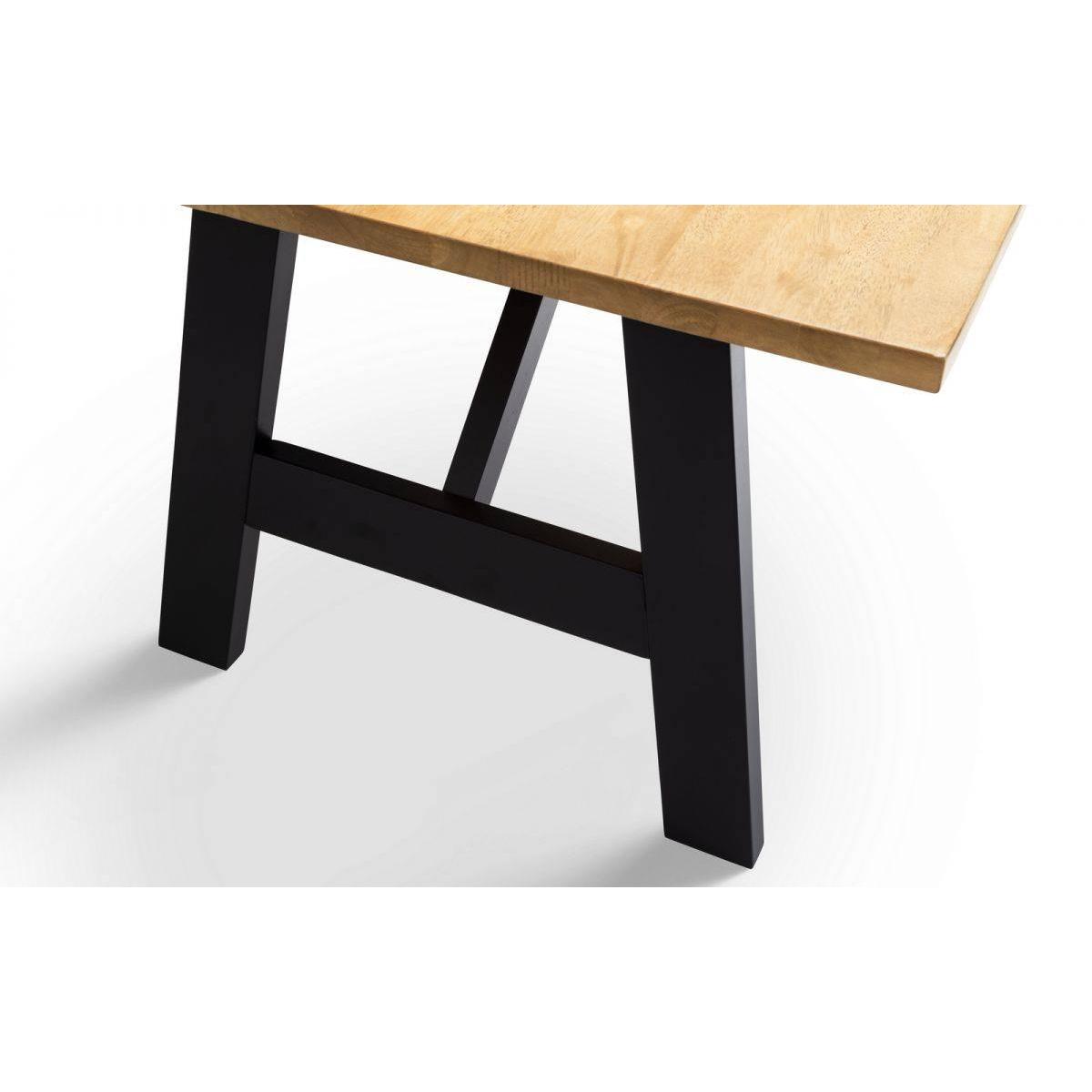 Featuring a 25mm rubberwood top, the Hockley dining table displays the natural colour and unique grain of the wood. A contrasting painted black rubberwood frame allows this dining table to be suitable for a wide range of decor. The perfect match for the Hockley Bench and Hockley Dining Chairs. Dimensions: 90cm (D) x 190cm (W) x 73.5cm (H)Assembly required.