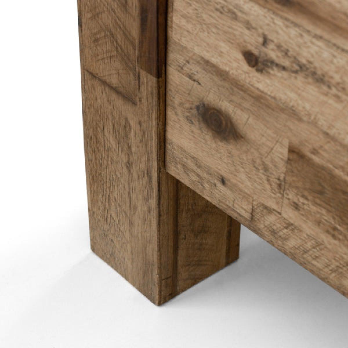 The Hoxton Bed is crafted from solid acacia, in a rustic oak finish and has a solid, unfussy design. Allowing the natural beauty of the wood to shine through with its distinctive lines, this contemporary bed is available in a 135cm double, 150cm king, and 180 cm sizes. Perfect for adding a touch of industrial chic to any bedroom. H:120 x W: 161. 6 x D: 220 x Head H: 120 x Foot H: 55. 5 cm. H:120 x W: 191. 6 x D: 220 x Head H: 120 x Foot H: 55. 5 cm.