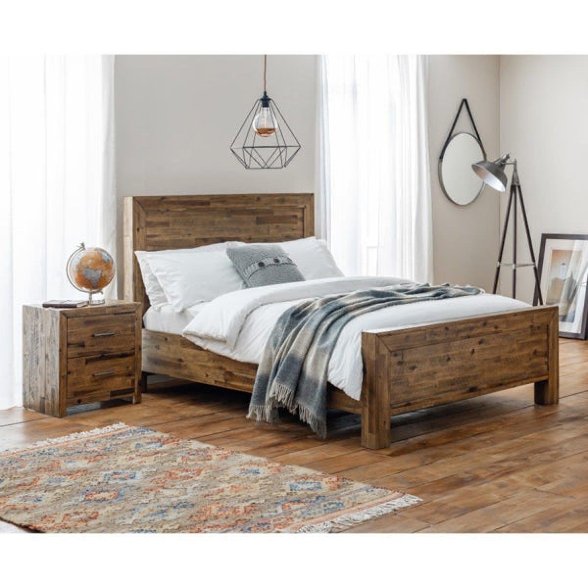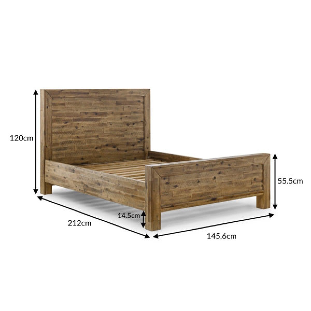 The Hoxton Bed is crafted from solid acacia, in a rustic oak finish and has a solid, unfussy design. Allowing the natural beauty of the wood to shine through with its distinctive lines, this contemporary bed is available in a 135cm double, 150cm king, and 180 cm sizes. Perfect for adding a touch of industrial chic to any bedroom. H:120 x W: 161. 6 x D: 220 x Head H: 120 x Foot H: 55. 5 cm. H:120 x W: 191. 6 x D: 220 x Head H: 120 x Foot H: 55. 5 cm.