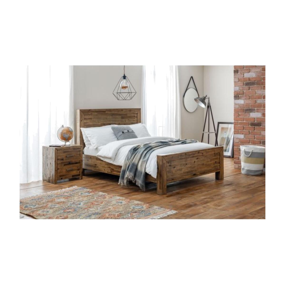 The Hoxton Bed is crafted from solid acacia, in a rustic oak finish and has a solid, unfussy design. Allowing the natural beauty of the wood to shine through with its distinctive lines, this contemporary bed is available in a 135cm double, and 150cm king sizes.   Perfect for adding a touch of industrial chic to any bedroom. Features: Requires assembly Crafted from solid wood The beds distinctive lines show the natural beauty of the wood Brings an industrial chic feel to any bedroom Available in 135cm double,150cm king and 180cm super king sizes