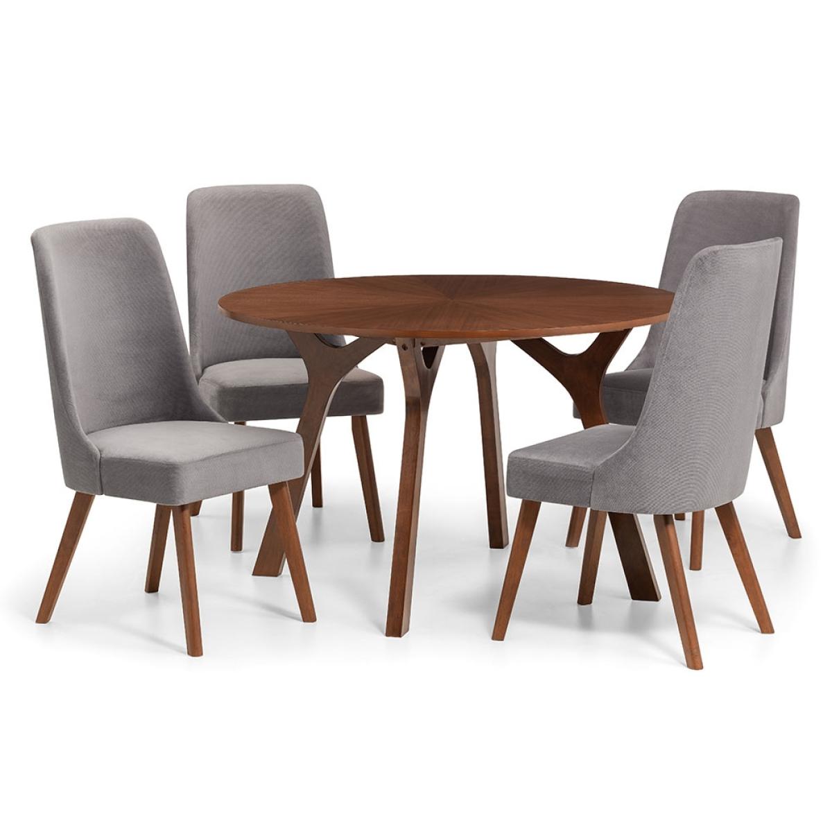 Sophisticated and oh-so chic, sit down and relax around the Huxley Dining Set by Julian Bowen! Designed with a gorgeous warm Oak wood veneer, the 4 Huxley upholstered dining chairs and round table will add a dash of glamour at dinner. Finished in a soft dusk grey chenille fabric, the curved seat backs offer support and comfort while you dine. Stylish and luxurious, this is sure to be your new favourite spot in your home! Perfect in the dining room or kitchen, this elegant combination will completely transform your chosen space.