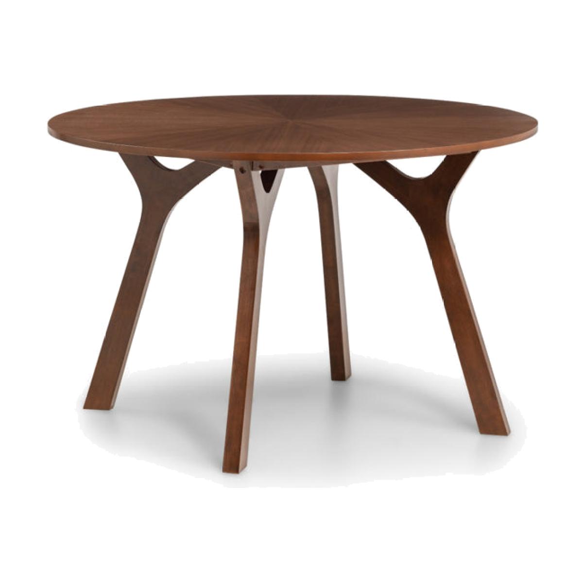 The Huxley round dining table is a contemporary design, with a traditional influence. Bringing warmth to any dining room, perfect for a mix of modern or traditional decor. Crafted from walnut veneer, this rich coloured dining table excels in stability.
