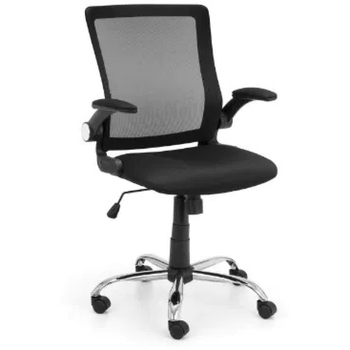 Stay comfortable and supported throughout your working day with the Julian Bowen Imola Office Chair. Designed with both style and practicality in mind, this compact office chair is ideal for any home office or professional workspace. The breathable mesh back provides excellent ventilation, while the built-in lumbar support promotes healthy posture. Pivoting arms and a padded seat add to the overall comfort, making it easy to stay focused and productive. The single-lever mechanism allows for easy adjustment of the seat height and reclining function, enabling a personalised seating position. Finished with a sturdy 5-star chrome base and smooth-rolling castors, the Imola offers effortless mobility and long-lasting durability. Features:. Breathable mesh back with integrated lumbar support Padded seat for all-day comfort Pivoting armrests Single-lever mechanism for seat height adjustment and reclining lock/release Sturdy 5-star chrome base Smooth-rolling castors for easy movement Ideal for home offices or workplace environments Assembly required Dimensions:. Height 96106cm Width 65cm Depth 65cm With its sleek, modern design and ergonomic features, the Imola Office Chair is a smart and stylish addition to any workspace.