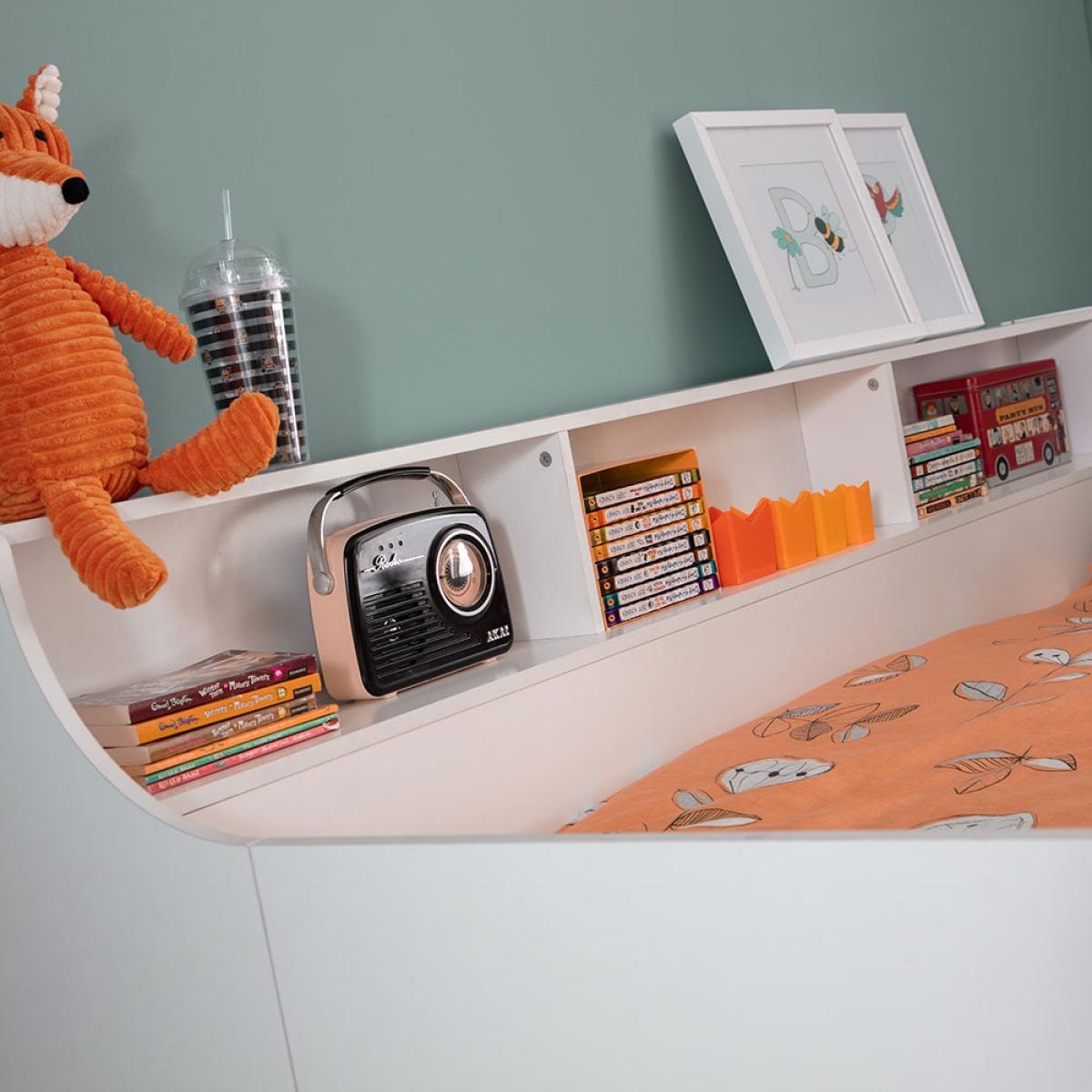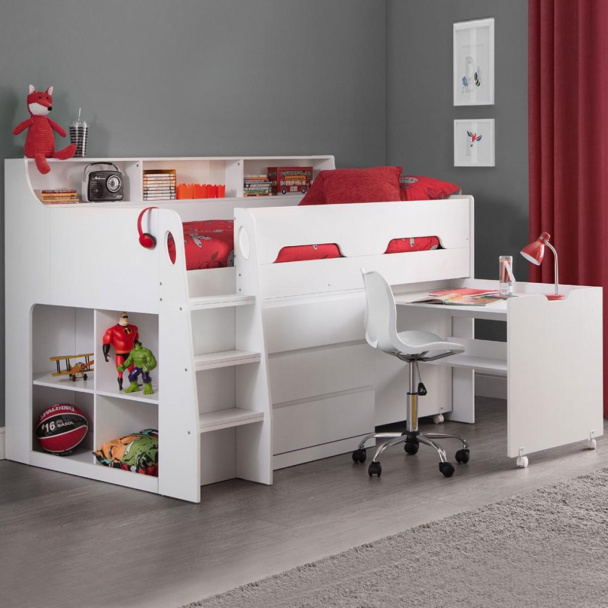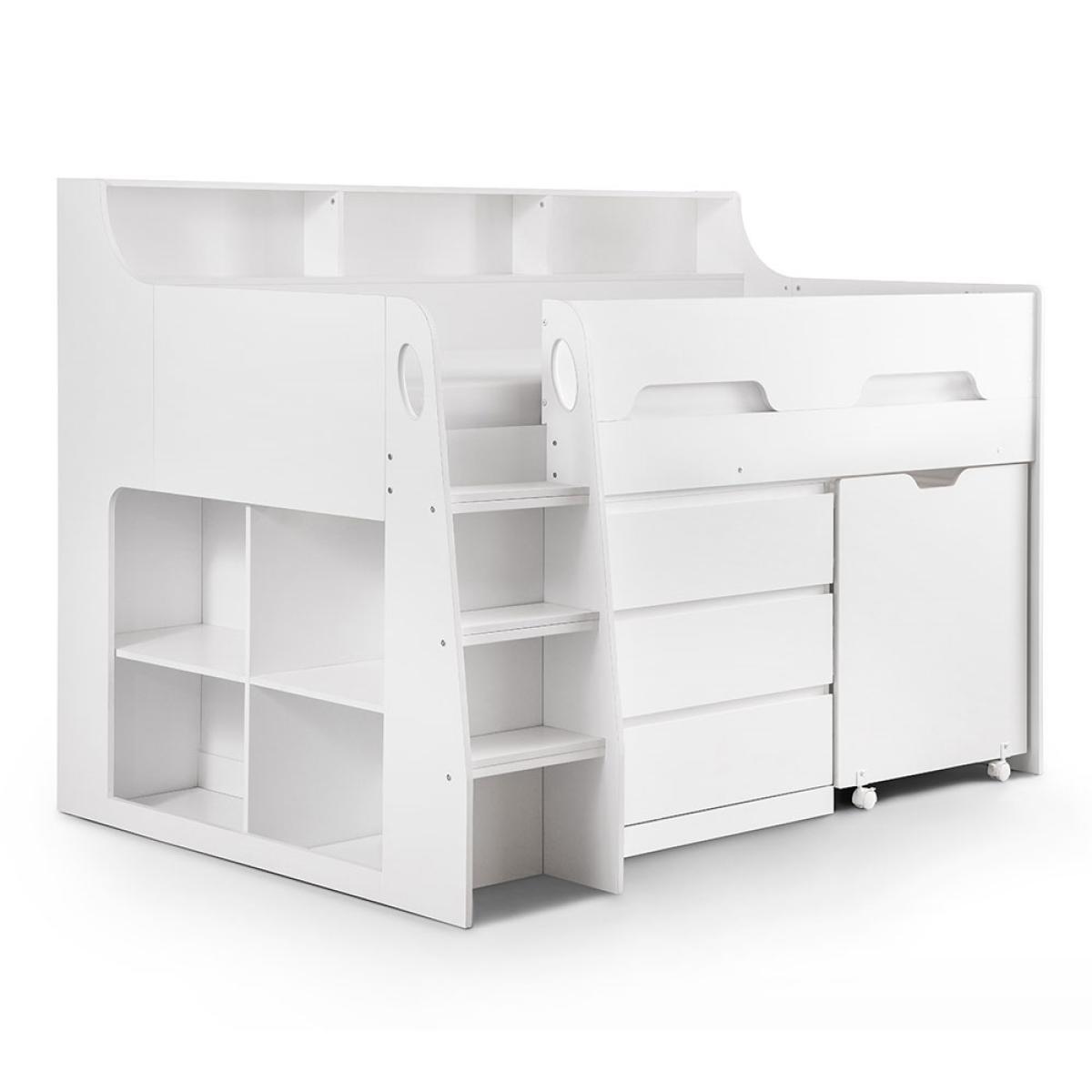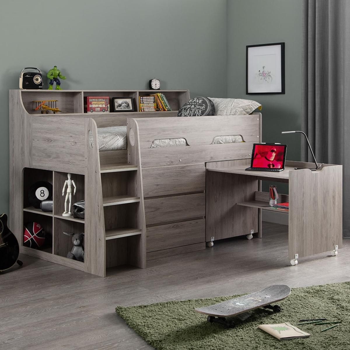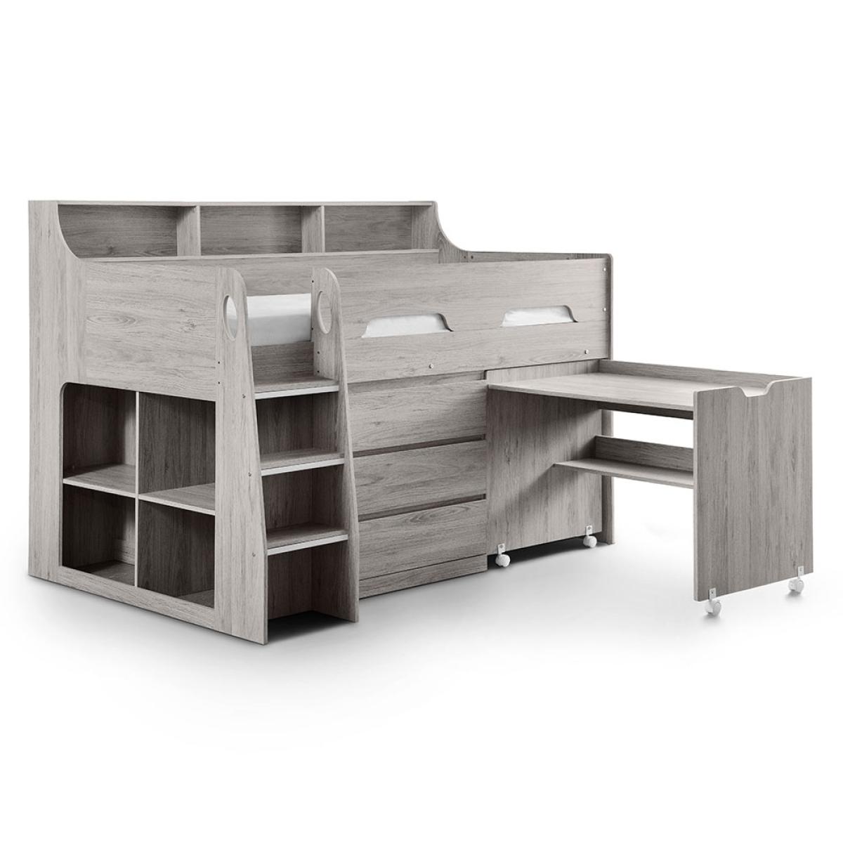 A wonderful option for smaller bedrooms, the Jupiter Midsleeper Bed from Julian Bowen will be a great addition to your kiddies room. Keeping their bedroom tidy will be one easy task with this cabin bed about, or we hope so at least! With drawers and shelving beneath, storing their clothes, games and toys will be a doddle. And with a pull out desk, it's a fantastic spot to do that dreaded homework. What's more when the homework is all done just push it back under the bed to create more space to play! What could be better? Available in 2 colours; white or grey oak there will be one to suit your space perfectly and would be ideal for growing kiddies.