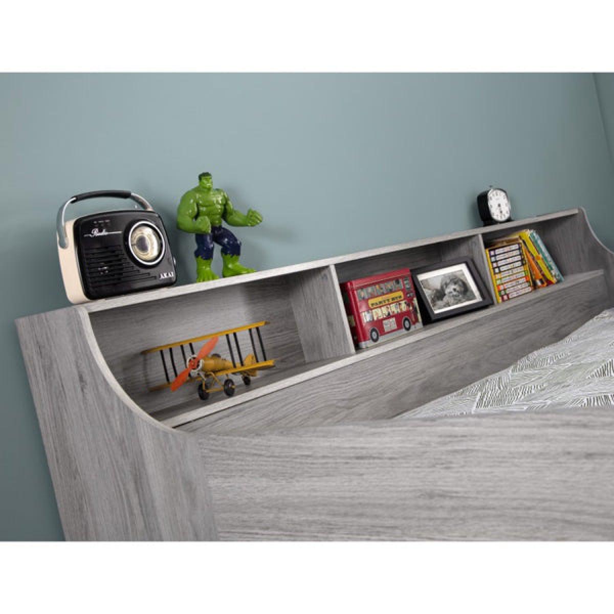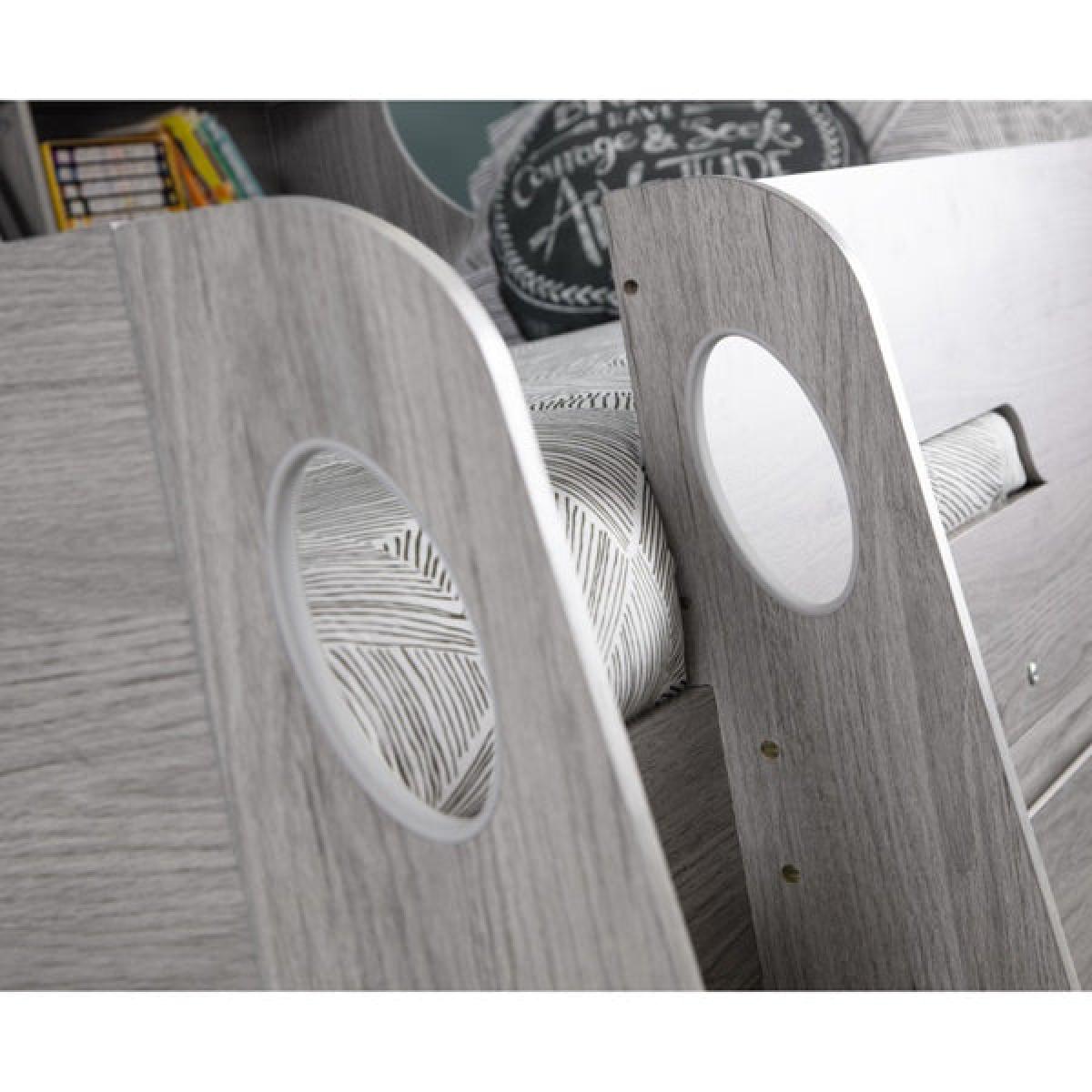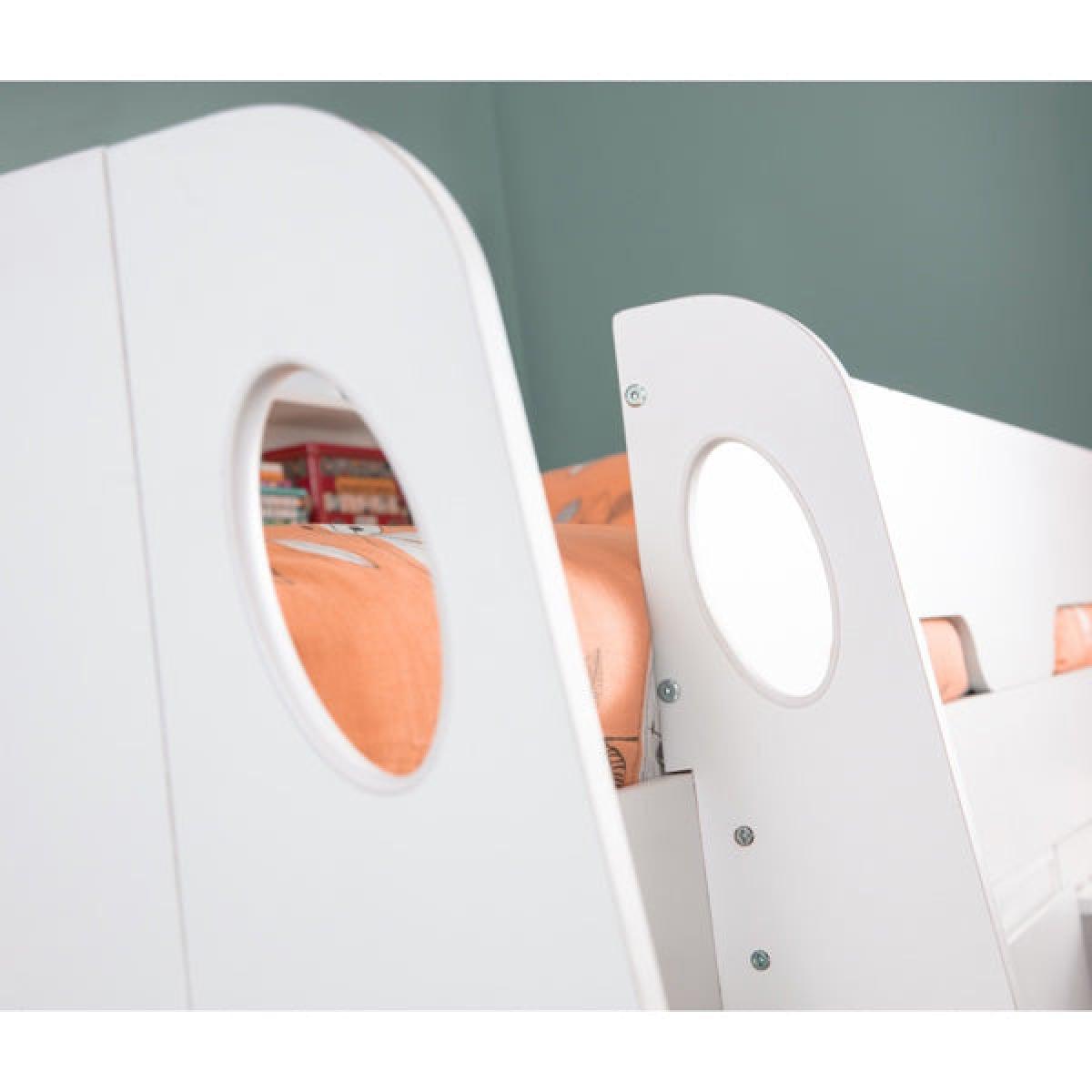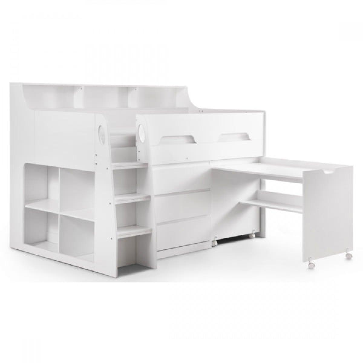 The Jupiter Midsleeper is an ideal space saver, featuring a chest of drawers, various shelves and a pull out desk. Available in two colour options, White or Grey Oak, the Jupiter is the perfect match for any kids bedroom, creating a fresh modern design. The robust ladder features beautiful cut out handles, with glow in the dark strips on the steps for added safety.