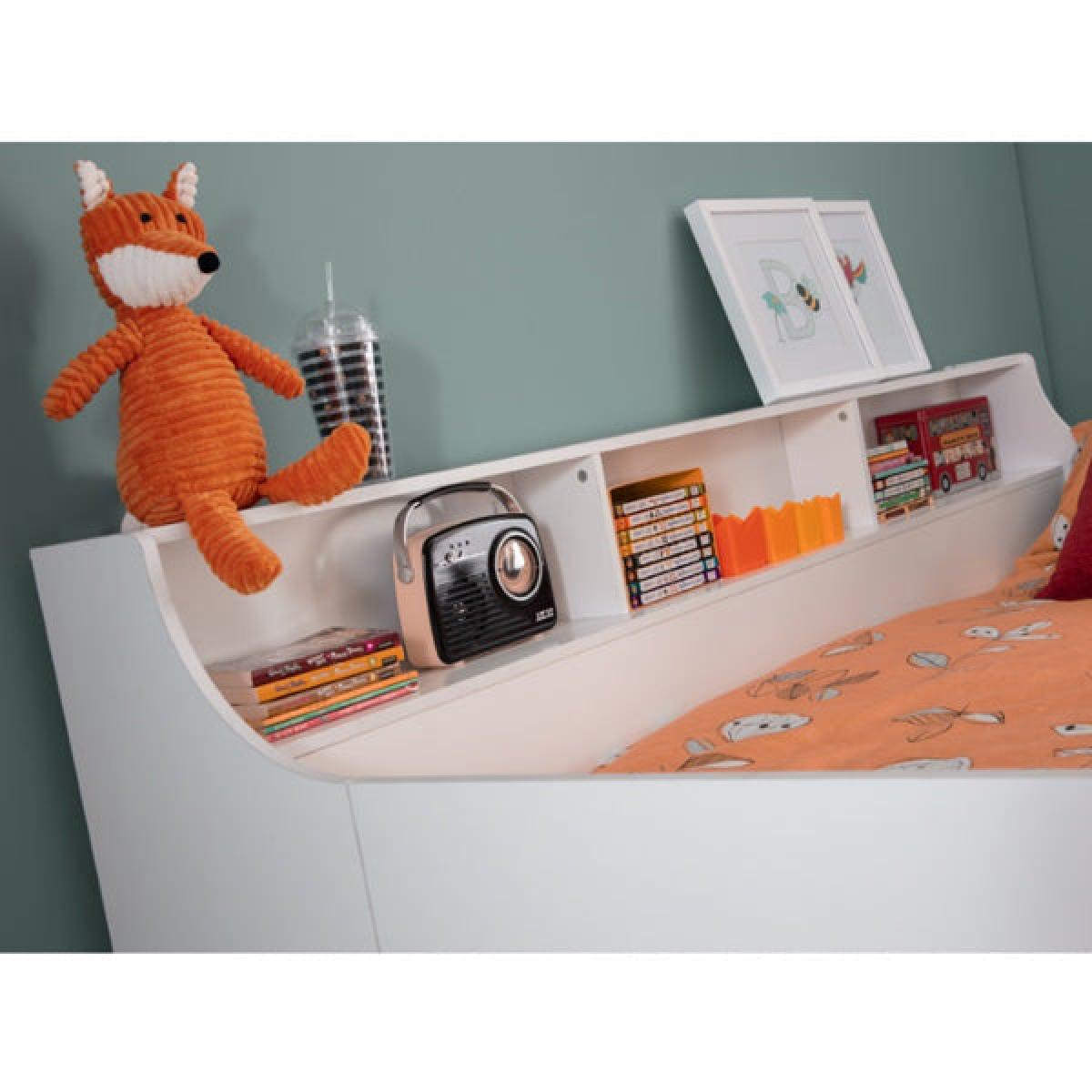 I love the Julian Bowen Jupiter Midsleeper in white for its clever blend of practicality and contemporary style. It’s perfect for smaller spaces, given its storage options and space-saving design, making it ideal for kids’ bedrooms that need to maximise every inch. The clean white finish works well in modern, scandi, or minimalist interiors, but it can also be softened with colourful bedding and playful accessories for a more vibrant look. Practical styling tips include pairing it with colourful cushions, playful rugs, or pinboards to personalise the space. Since it’s a storage bed, incorporating organisational bins or boxes in coordinating colours will keep clutter at bay and maintain a tidy, stylish bedroom.