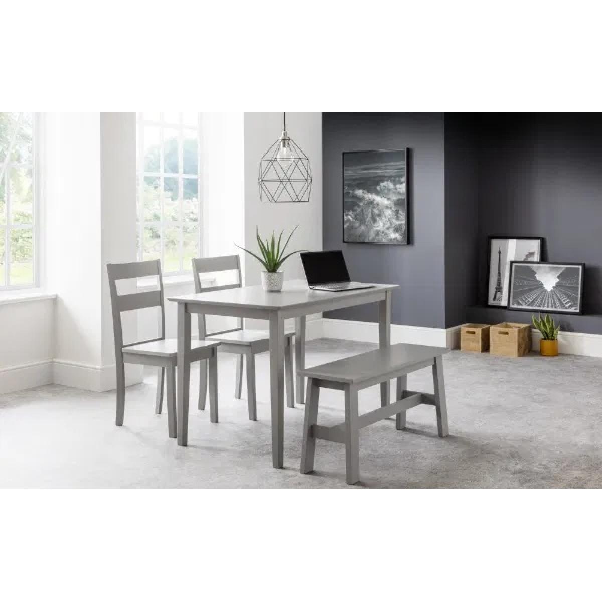 Stylish and space-saving, the Julian Bowen Kobe Bench is a smart and practical seating solution for modern homes. Finished in a sleek grey lacquer, it features a clean, minimalist design that complements a variety of interior styles. Comfortably seating up to two people, this compact bench is ideal for dining areas, kitchens, or entryways. Designed to pair perfectly with the Julian Bowen Kobe Rectangular Table, it creates a cohesive and contemporary dining set—particularly well-suited to smaller spaces. Features: Finish:Modern grey lacquer Seating capacity: Up to 2 people Compact and practical design Ideal match for the Julian Bowen Kobe Rectangular Table Assembly required Dimensions: Height 45cm Length 92cm Width 30cm A versatile piece that brings both form and function, the Kobe Bench is an excellent addition to compact living areas or kitchens where space is at a premium. Please note All screens vary in colour reproduction and whilst every effort has been made to display the colour as accurately as possible it is for guidance only.