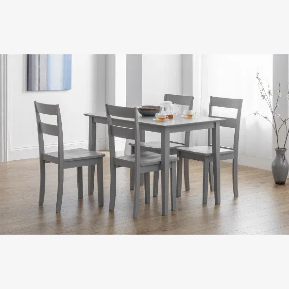 Both stylish and practical, the Kobe Compact Rectangular Table is a smart choice for modern living. Finished in a sleek grey lacquer, its clean and contemporary design suits a wide range of interior styles. Ideal for smaller kitchen or dining areas, this space-saving table comfortably seats up to four people, making it perfect for everyday dining or casual entertaining. Its compact dimensions allow it to fit neatly into modest spaces without compromising on style or function. Features: Seating capacity: Up to 4 people Compact and space-efficient design Finished in a modern grey lacquer Complements the Julian Bowen Kobe Dining Chair Assembly required Dimensions: Height 74cm Length 112cm Width 72cm A versatile and elegant choice for smaller homes or apartments, the Kobe Table brings everyday functionality with a refined, minimalist look. Please note All screens vary in colour reproduction and whilst every effort has been made to display the colour as accurately as possible it is for guidance only.