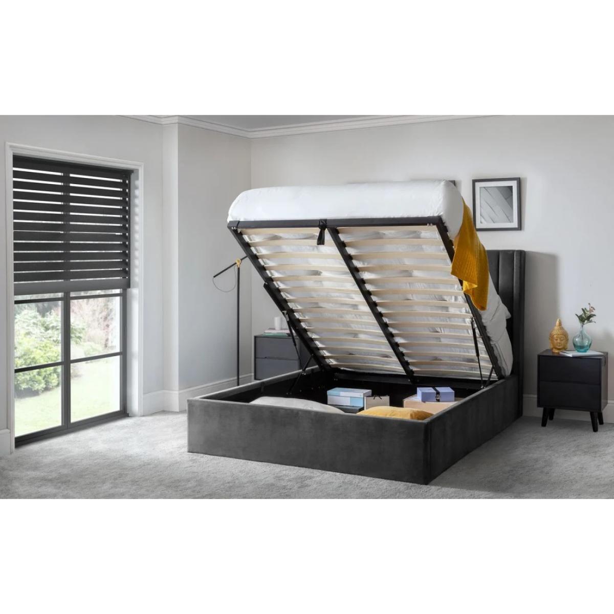 julian Bowen Langham Storage Bed in Grey – Elegant Design, Clever Storage Add a touch of timeless luxury to your bedroom with the Langham Storage Bed. Featuring a beautifully scalloped headboard, this bed exudes sophistication and style, effortlessly complementing both classic and contemporary interiors. Designed with modern living in mind, the Langham includes a spacious ottoman base, providing discreet, easy-to-access storage—perfect for keeping spare bedding, pillows, or seasonal clothes neatly out of sight. Upholstered in an elegant grey fabric, this bed combines comfort, practicality, and chic design in one stunning piece. FEATURES: Luxurious scalloped headboard for a refined look Generous ottoman storage base maximises bedroom space Upholstered in a soft, elegant grey fabric Both stylish and practical—ideal for modern homes Flat-packed for home assembly DIMENSIONS: Double: Height: 133cm Width: 149cm Depth: 210cm King: Height: 133cm Width: 164cm Depth: 218cm Super King: Height: 133cm Width: 194cm Depth: 218cm All screens vary in colour reproduction and whilst every effort has been made to display the colour as accurately as possible it is for guidance only.