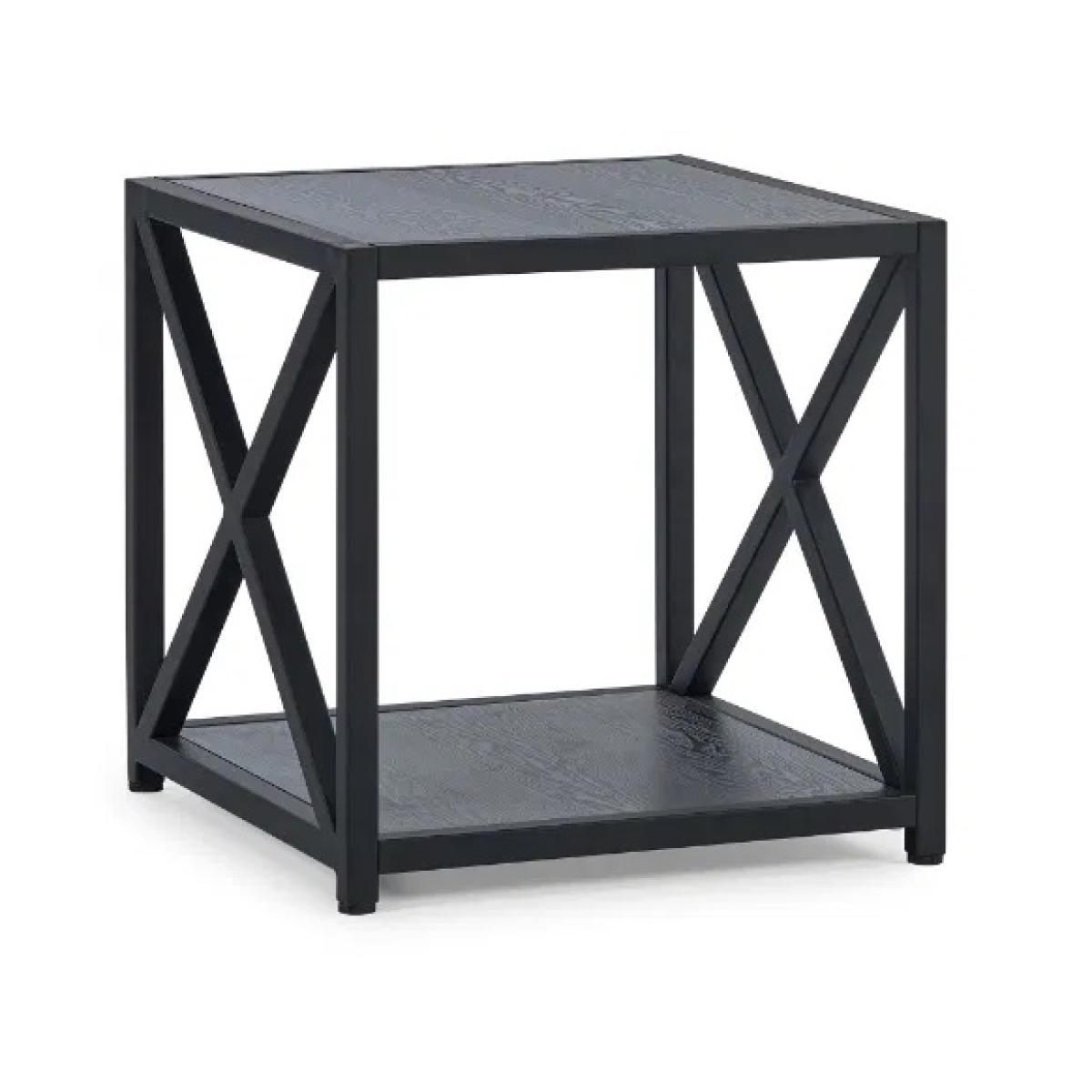 The Lima Lamp Table by Julian Bowen is a perfect blend of style and functionality, designed to bring a contemporary edge to your living space. Featuring a striking cross-frame base and finished in a rich black ash, this elegant table makes an eye-catching statement while remaining versatile enough for a variety of interiors. Ideal for placing beside a sofa or armchair, the Lima includes a lower shelf offering practical storage or display space, making it as useful as it is stylish. Features: Finished in sophisticated black ash veneer Contemporary cross-frame design Additional lower shelf for storage or display Ideal as a side table or accent piece Assembly required Dimensions: Height 48cm Length 48cm Width 48cm Whether used to showcase a lamp, hold your favourite book, or support a cup of tea, the Lima Lamp Table adds a refined, modern touch to any room. Please note All screens vary in colour reproduction and whilst every effort has been made to display the colour as accurately as possible it is for guidance only.