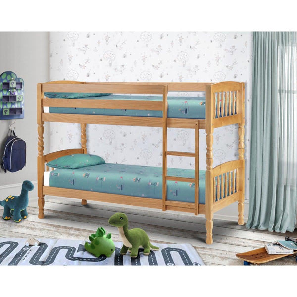 This traditional bunk bed has beautiful turned spindles and is finished antique lacquer. Constructed from solid pine, ensuring long lasting durability. Due to Bunk Bed Safety Regulations, only the Premier Mattress is suitable for use on the upper bunk.