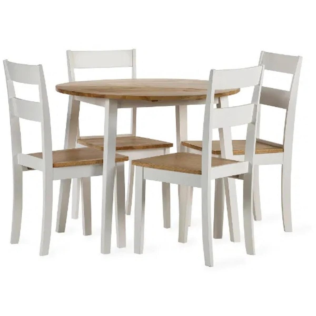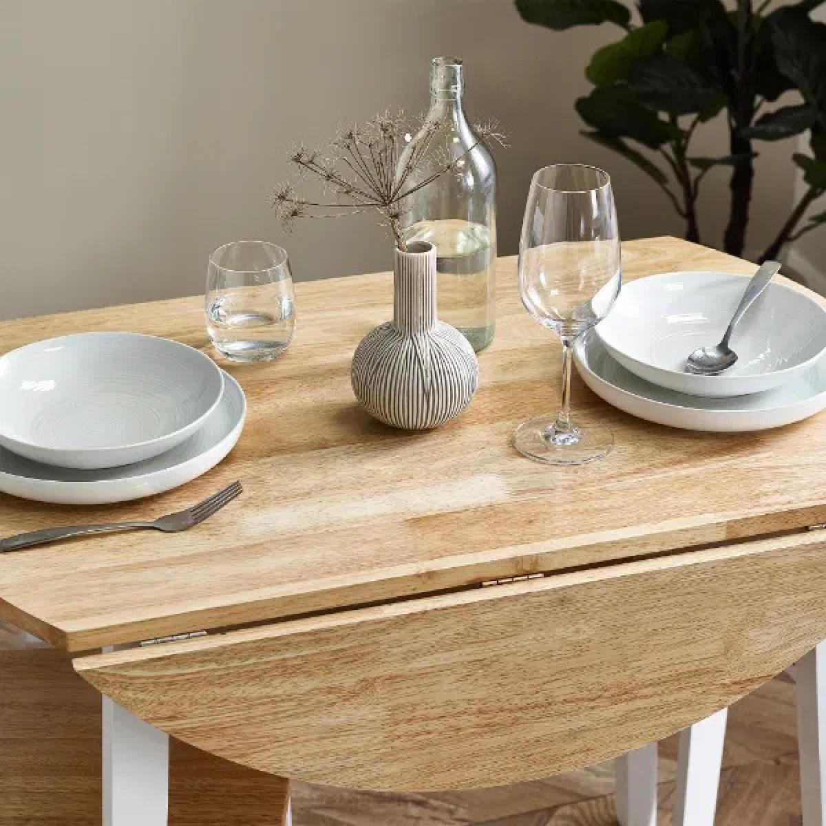 The Linwood Round Dropleaf Table is a timeless and practical addition to any home, blending classic style with everyday functionality. Beautifully finished with a light oak effect top and crisp white legs, this charming piece adds a touch of country-inspired elegance to both traditional and modern interiors. Designed with versatility in mind, the dropleaf feature allows you to effortlessly extend the surface area, making it ideal for smaller dining spaces or when you need additional room for guests. Whether placed in a kitchen, dining area or open-plan living space, the Linwood table brings both beauty and practicality to your home. Features: Classic round shape with extendable dropleaf sides Light oak effect tabletop for a warm, natural look Contrasting white painted legs for a fresh, elegant finish Ideal for compact spaces or occasional use Seats 2–4 people comfortably Easy to assemble Dimensions: Height 75.5cm Length 75.5cm Width 75.5cm Perfect for intimate dinners or casual coffee mornings, the Linwood Round Dropleaf Table is a versatile solution for stylish, space-saving dining. Please note All screens vary in colour reproduction and whilst every effort has been made to display the colour as accurately as possible it is for guidance only.