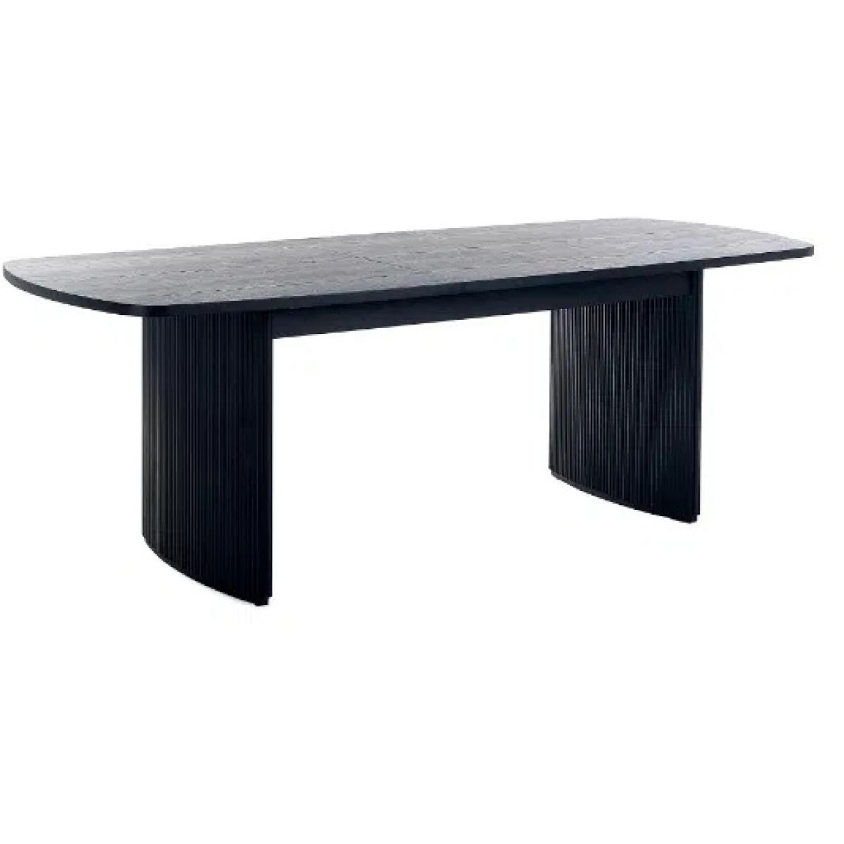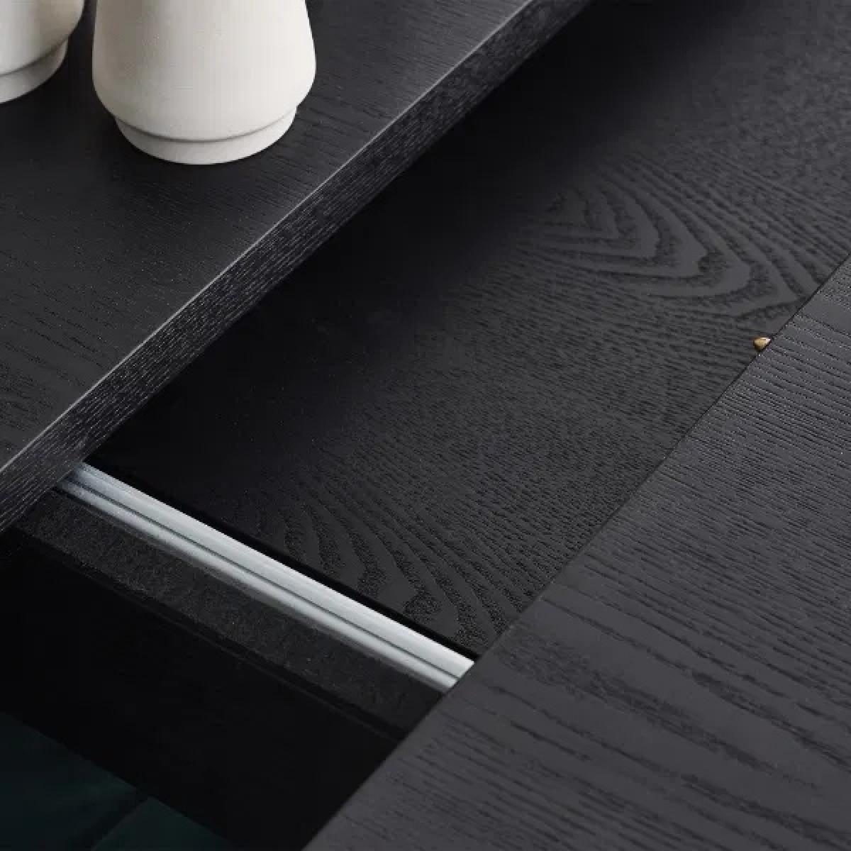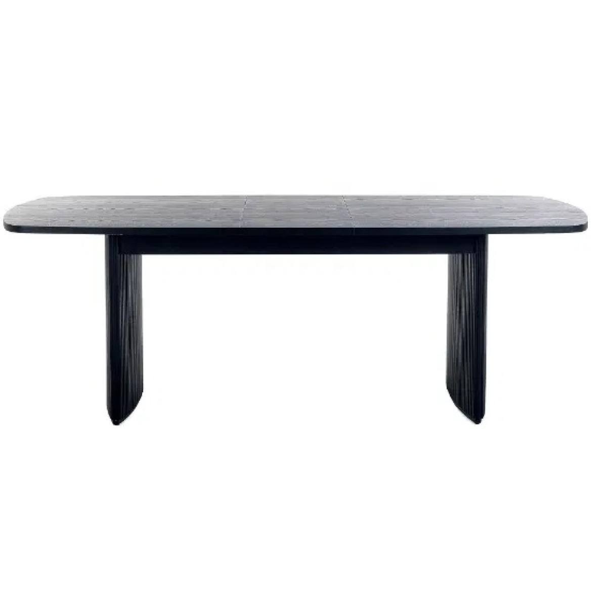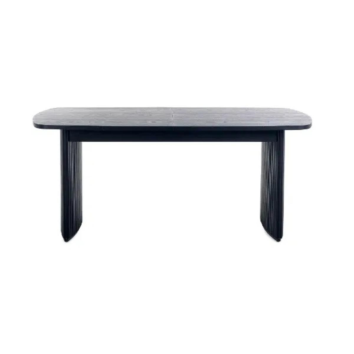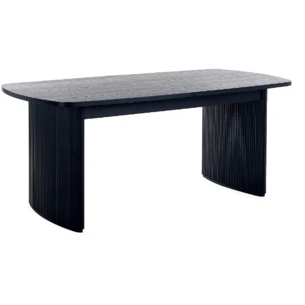 Bring a bold sense of style to your dining area with the Louis Fluted Extending Dining Table in luxurious matt black. Designed to impress, this striking table combines clean, modern lines with classic fluted pedestal detailing, offering a stunning centrepiece for both everyday dining and special occasions. The table’s elegant chamfered edges and twin fluted bases create a sculptural silhouette that complements a variety of interior styles. Crafted for both beauty and practicality, the extending design allows the table to effortlessly expand from 180cm to 220cm – ideal for accommodating extra guests when needed. Features: Finished in sophisticated matt black Twin fluted pedestal bases with chamfered edge detailing Extending function for added seating flexibility Modern yet timeless design Minimal assembly required Dimensions: Height 77cm Width 180–220cm Depth 90cm Whether hosting family dinners or entertaining guests, the Louis Fluted Extending Table offers a refined solution with both presence and practicality. Please note All screens vary in colour reproduction and whilst every effort has been made to display the colour as accurately as possible it is for guidance only.