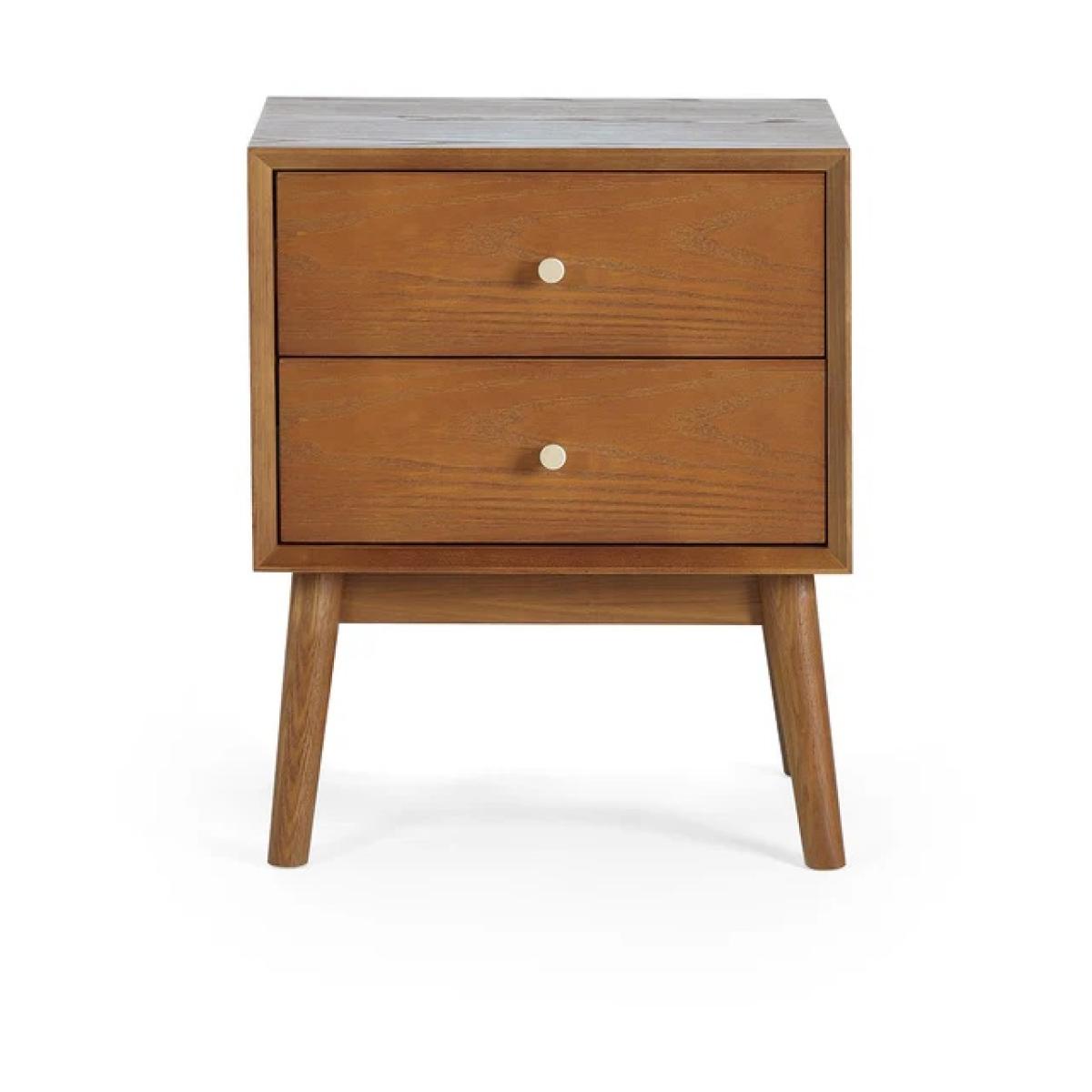 Retro-inspired style with a nostalgic feel, the Julian Bowen Lowry 2 Drawer Bedside is a gorgeous timeless design that will add character and depth to any bedroom space. Constructed from an exquisite cherry ash wood veneer with beautifully tapered legs, complemented by golden framed knobs. The Lowry 2-drawer bedside features 2 drawers suitable for storing away nighttime essentials. Features: A gorgeous retro-inspired design Constructed from an exquisite cherry ash wood veneer Two drawers suitable for storing away nighttime essentials Will provide character and depth to any occasional space 12 month product guarantee. Some Assembly Required Dimensions: Height 61cm Width 46cm Depth 38cm All screens vary in colour reproduction and whilst every effort has been made to display the colour as accurately as possible it is for guidance only.