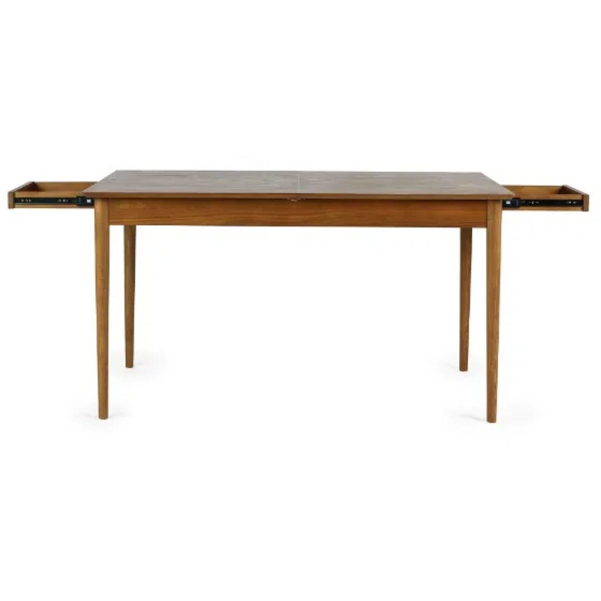 Add a touch of mid-century charm to your dining space with the Julian Bowen Lowry Extending Dining Table. Crafted from exquisite cherry ash wood veneer, this elegant piece combines retro styling with modern functionality. The slim, tapered legs lend a sense of lightness, while the rich wood tones bring warmth and character to any setting. This beautifully designed table features a seamless extension mechanism—ideal for entertaining or accommodating extra guests—and two discreet push-open drawers that provide convenient storage for cutlery, placemats, or dining essentials. Whether hosting a dinner party or enjoying a quiet family meal, the Lowry table offers style, practicality, and timeless appeal in equal measure. Features: Cherry ash wood veneer construction for a warm, natural finish Stylish retro-inspired design with slender tapered legs Extending table top for added versatility Two integrated push-touch drawers for hidden storage Perfect for both everyday dining and special occasions Complements a range of classic and contemporary interiors Dimensions: Height: 78cm Width: 180cm Depth: 90cm Please note All screens vary in colour reproduction and whilst every effort has been made to display the colour as accurately as possible it is for guidance only.