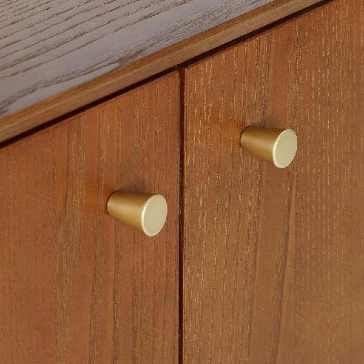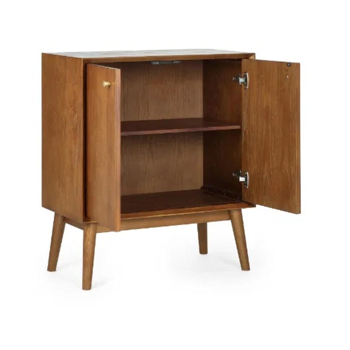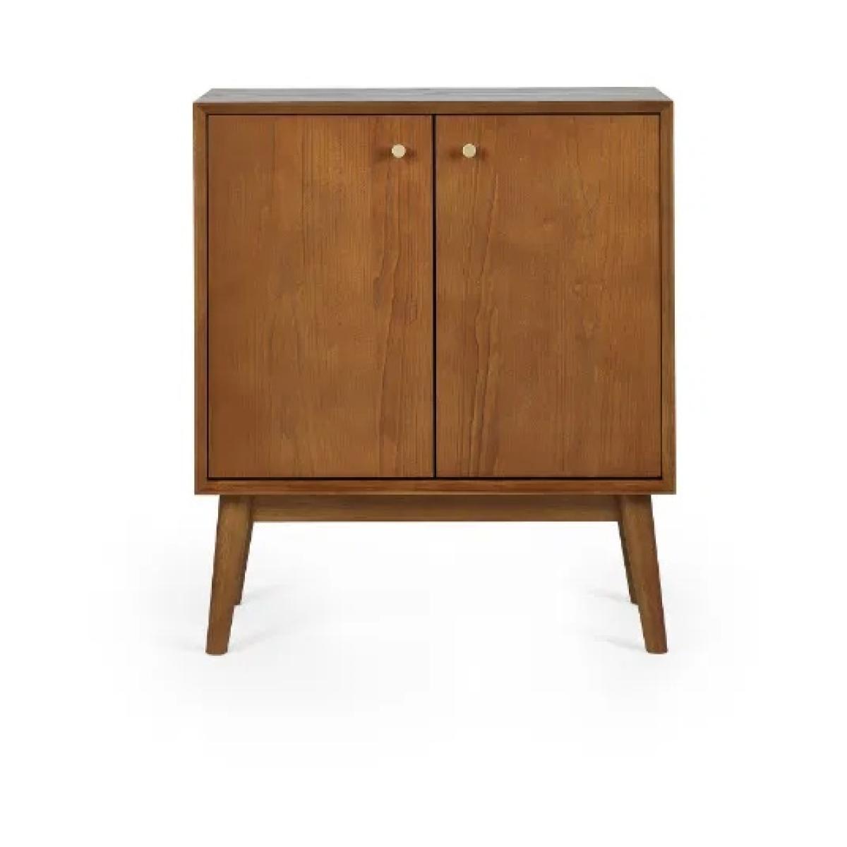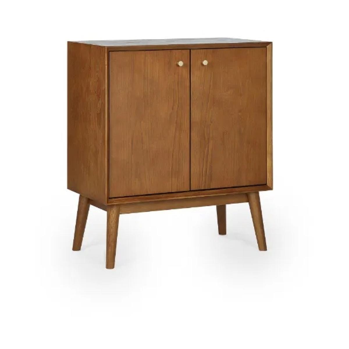 Add a touch of vintage charm to your home with the Julian Bowen Lowry Small Sideboard. This elegant, retro-inspired piece is crafted from a rich cherry ash wood veneer, beautifully finished with slender, tapered legs to create a refined and timeless aesthetic. The soft-touch cupboard doors open to reveal interior shelving, offering practical storage for everyday essentials. Finished with sophisticated gold-framed knobs, this sideboard is a perfect accent for any living or dining space, combining functionality with classic style. Features: Retro-inspired design with cherry ash wood veneer Soft-touch cupboard doors with interior shelving Elegant gold-framed knobs for a refined finish Beautifully tapered legs for a mid-century feel Ideal for storing crockery, tableware, or household items Dimensions: Height: 80cm Width: 70cm Depth: 38cm Please note All screens vary in colour reproduction and whilst every effort has been made to display the colour as accurately as possible it is for guidance only.