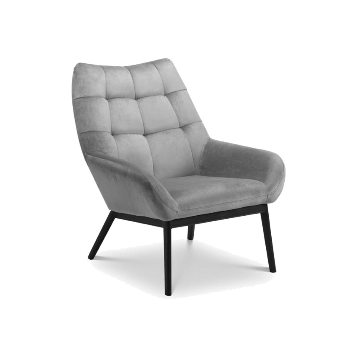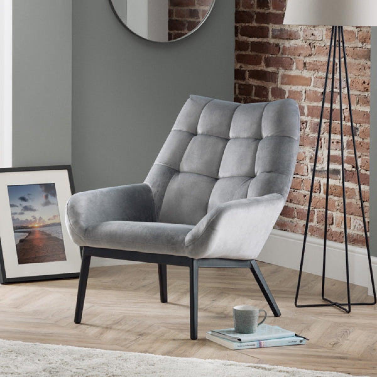 I love this armchair for its versatile style and inviting texture. The velvet finish adds a touch of sophistication, making it suitable for both contemporary and retro-inspired interiors. It works well as an accent piece in living rooms, bedrooms, or even cosy reading nooks. For styling tips, consider pairing it with a mix of sleek and textured cushions to add visual interest, or position it near a statement side table with a stylish lamp for a functional yet polished look. Its neutral grey colour makes it adaptable to various colour schemes, and the tufted back adds subtle detail that elevates its overall aesthetic.