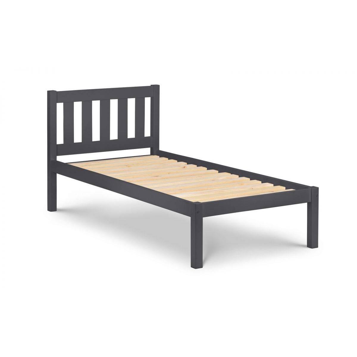 Crafted from solid pine with an anthracite lacquer, the Luna bed is perfect for a wide range of traditional and contemporary bedroom decor with its simple, yet stunning design. Offering a strong, durable construction, this bed features a solid slatted base, ensuring a comfortable night's sleep. The perfect match for the Julian Bowen Maine Bedroom collection. Dimensions: 201cm (D) x 98cm (W) x 92cm (H)Requires assembly.