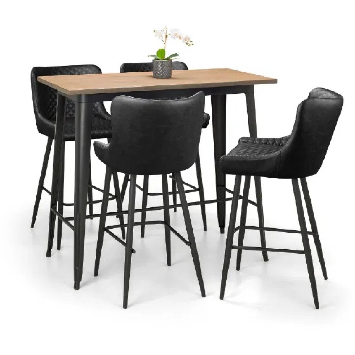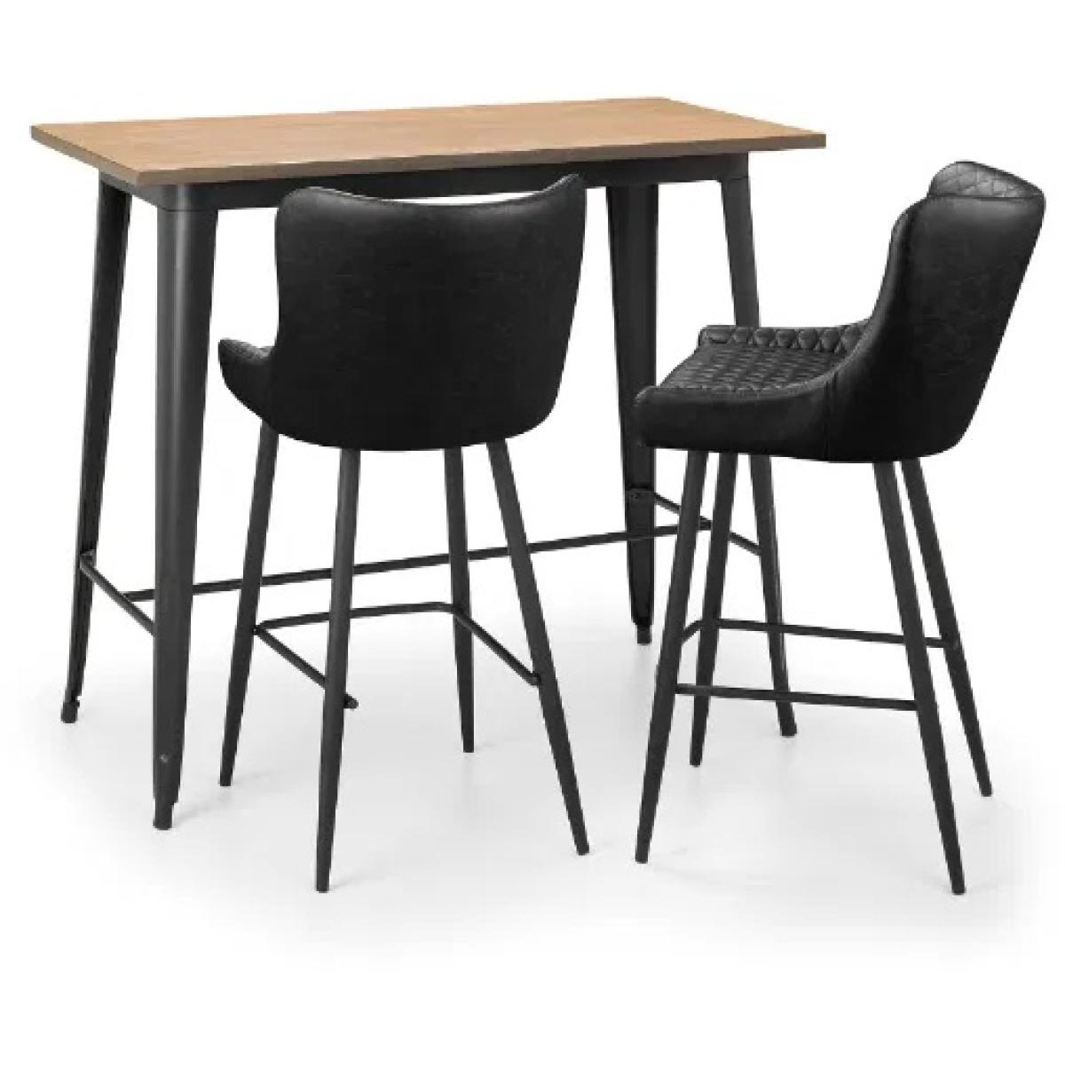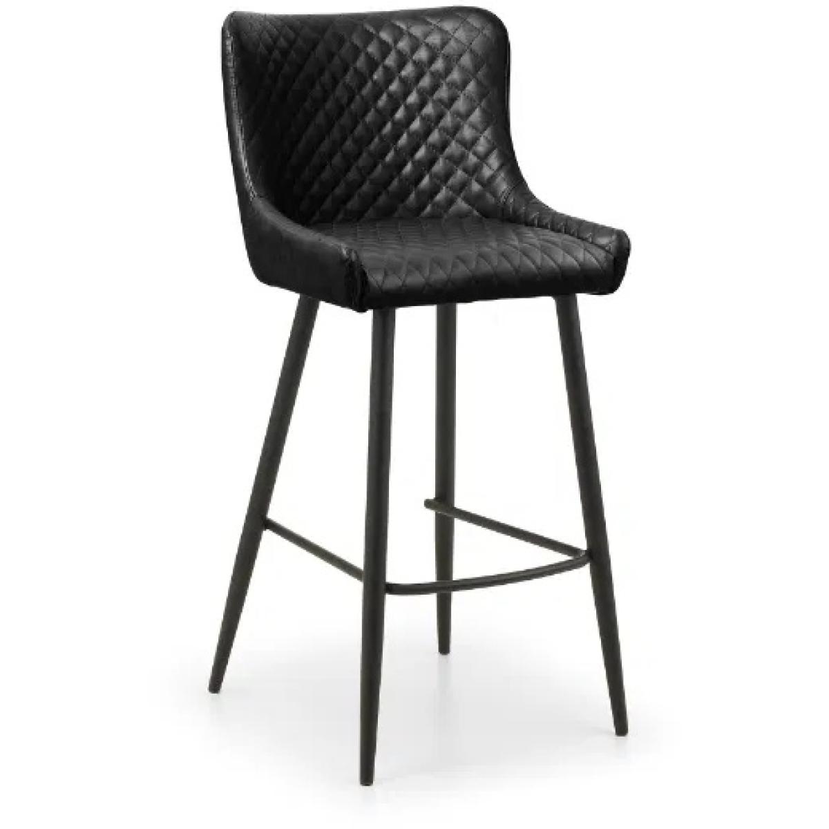 The Luxe Faux Leather Barstool by Julian Bowen combines modern style with comfort, making it an ideal addition to your kitchen or home bar. Upholstered in sleek black faux leather, this barstool offers a smooth, easy-to-clean surface and a contemporary aesthetic. The padded seat and curved backrest provide support for extended seating, while the chrome-finished footrest adds both style and practicality. Its sturdy construction ensures durability, making it perfect for everyday use in both modern and classic interiors. Features: Brand:Julian Bowen Upholstery: Black faux leather Padded seat and curved backrest for comfort Chrome-finished footrest Sturdy and durable frame Contemporary design, ideal for kitchens and home bars Dimensions (approx.): Height: 105 cm Width: 46 cm Depth: 54 cm Please note All screens vary in colour reproduction and whilst every effort has been made to display the colour as accurately as possible it is for guidance only.