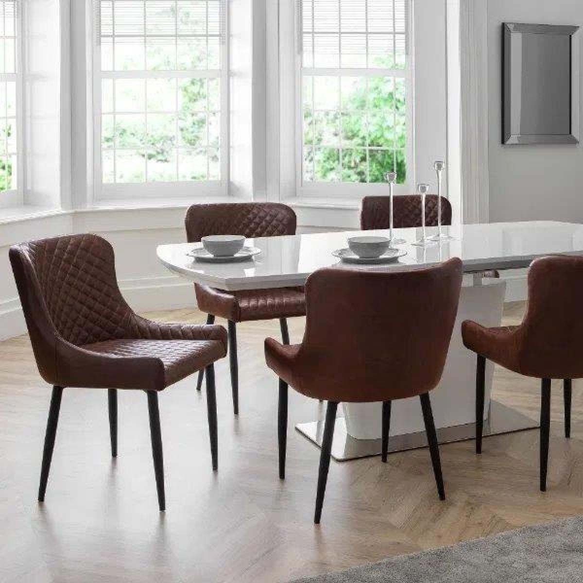 The Luxe Faux Leather Dining Chair by Julian Bowen offers a stylish blend of modern design and everyday comfort. Upholstered in rich brown faux leather, this dining chair brings warmth and sophistication to your dining area while being easy to clean and maintain. The padded seat and backrest ensure comfort during mealtimes, while the sturdy frame provides strength and durability. With its clean lines and versatile design, the Luxe chair complements a wide range of dining tables and interior styles, from contemporary to classic. Features: Brand:Julian Bowen Upholstery: Brown faux leather Padded seat and backrest for comfort Strong, durable frame Easy to clean and maintain Modern yet versatile design Dimensions (approx.): Height: 82 cm Width: 62 cm Depth: 50 cm Please note All screens vary in colour reproduction and whilst every effort has been made to display the colour as accurately as possible it is for guidance only.