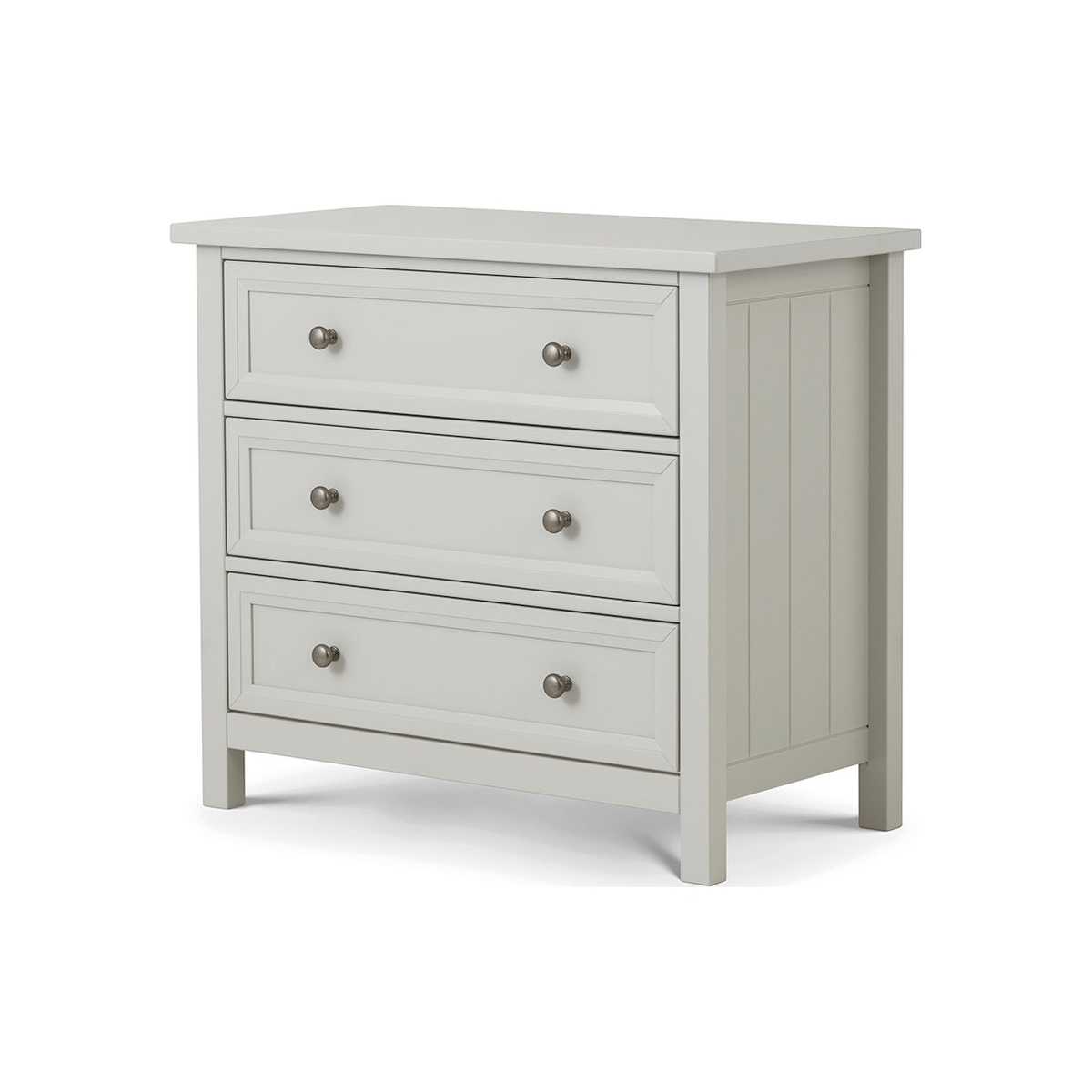 Keep your bedroom organised with the Maine 3 Drawer Chest from Julian Bowen, its classic styling is sure to look good wherever it is placed. Featuring three drawers, this little chest offers up plenty of storage for all of your bits and bobs. Ideal for clothing or even blankets and spare bedding! Available in a choice of colours with a lacquer finish and beautiful panelling detail at the sides, these drawers have a timeless look that will add a touch of class to any bedroom in your home. Combine with other pieces from the Maine collection and give your bedroom a revamp.