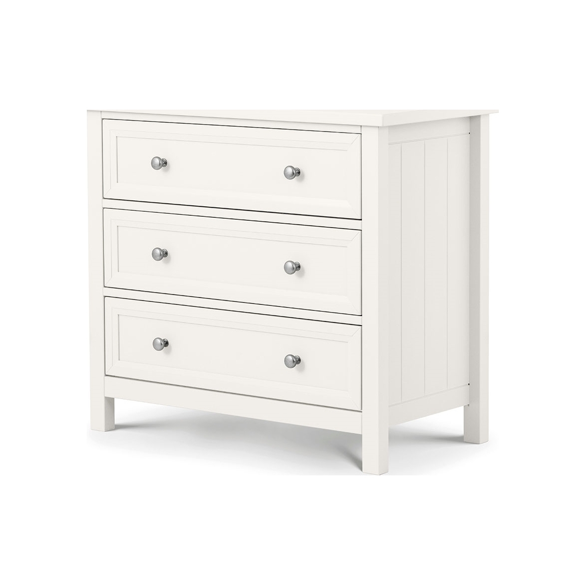 Keep your bedroom organised with the Maine 3 Drawer Chest from Julian Bowen, its classic styling is sure to look good wherever it is placed. Featuring three drawers, this little chest offers up plenty of storage for all of your bits and bobs. Ideal for clothing or even blankets and spare bedding! Available in a choice of colours with a lacquer finish and beautiful panelling detail at the sides, these drawers have a timeless look that will add a touch of class to any bedroom in your home. Combine with other pieces from the Maine collection and give your bedroom a revamp.
